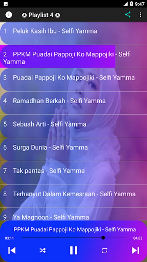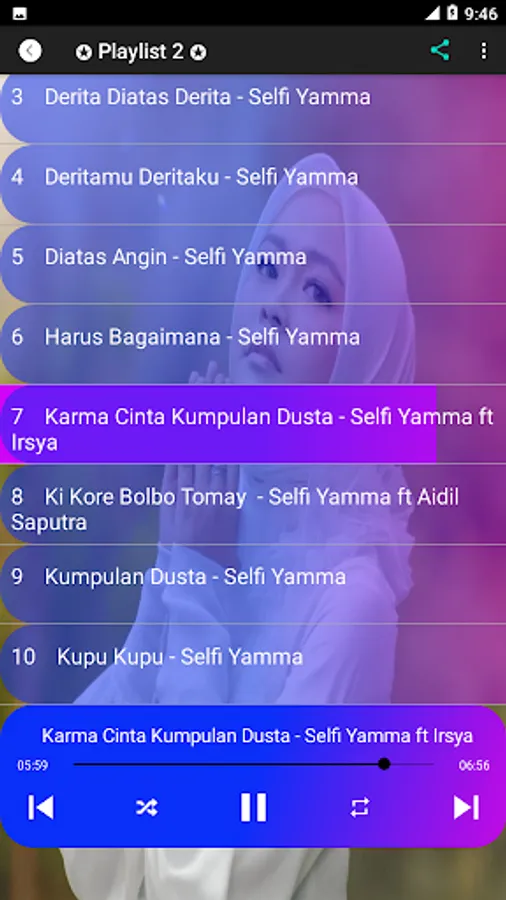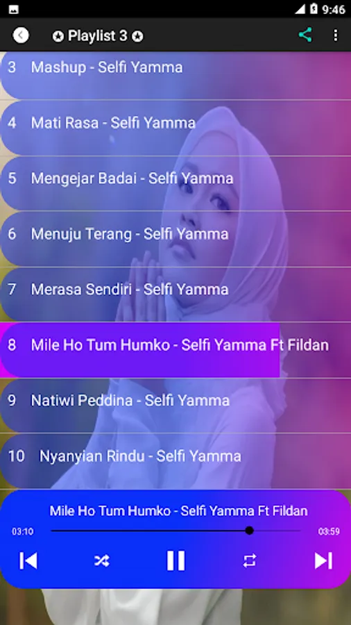 Selfi Yamma Lida Full Album is a simple MP3 music player application, so it's easy to use and contains a collection of dangdut pop songs sung by Selfi Yamma and it's free. Then, this application is also very light so it doesn't consume your memory. This application is perfect for those of you Selfi Yamma fans who have trouble finding selfi yama songs one by one because this application has provided all the selfi yamma songs in one hand with clear sound.