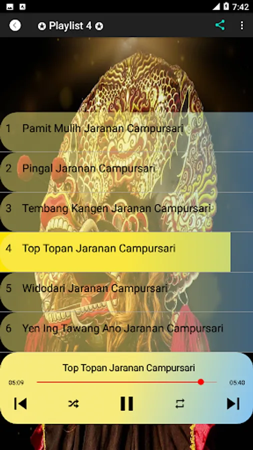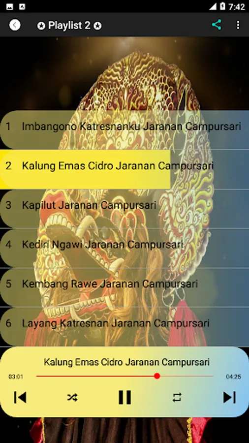 Besides being simple and easy to use, you can enjoy the Jaranan Campursari Song application offline.