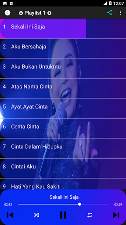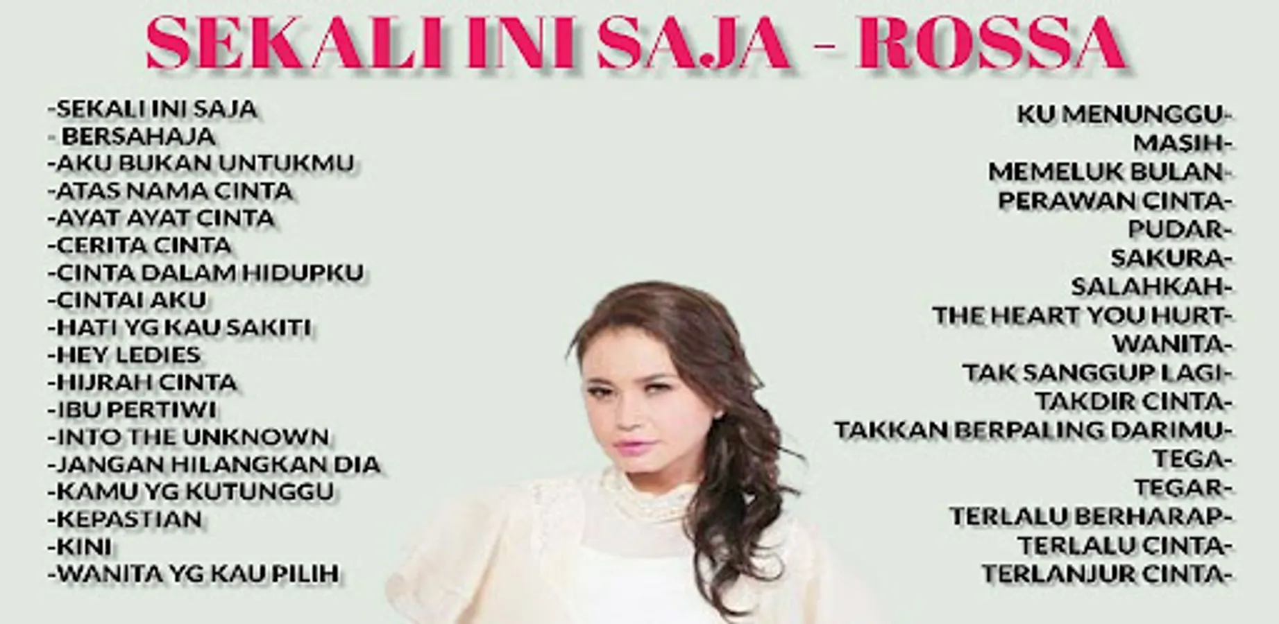 Rosa is known for trending Indonesian Pop songs whose lyrics can touch the listener. In addition to Indonesian Pop Hits Songs, Rossa also often sings Old Memories Songs, Nostalgic Songs, Indonesian Slow Rock Songs, Disco Songs, and Troubled Songs. Rossa Full Album Offline is an application that contains music songs from Rossa with hits of verses of love for sakura, there are many others to listen to apk without the need to use internet quota (Offline).