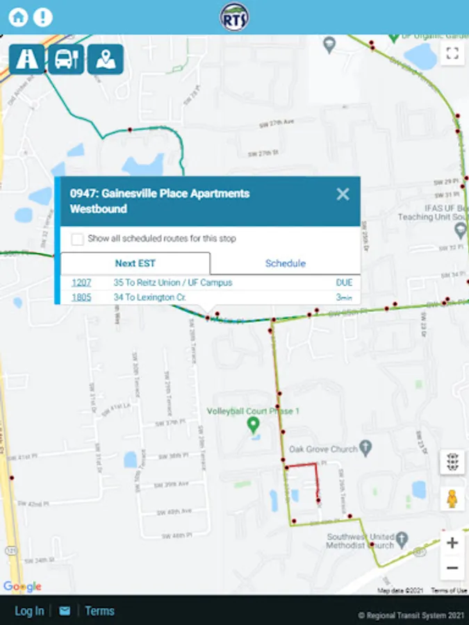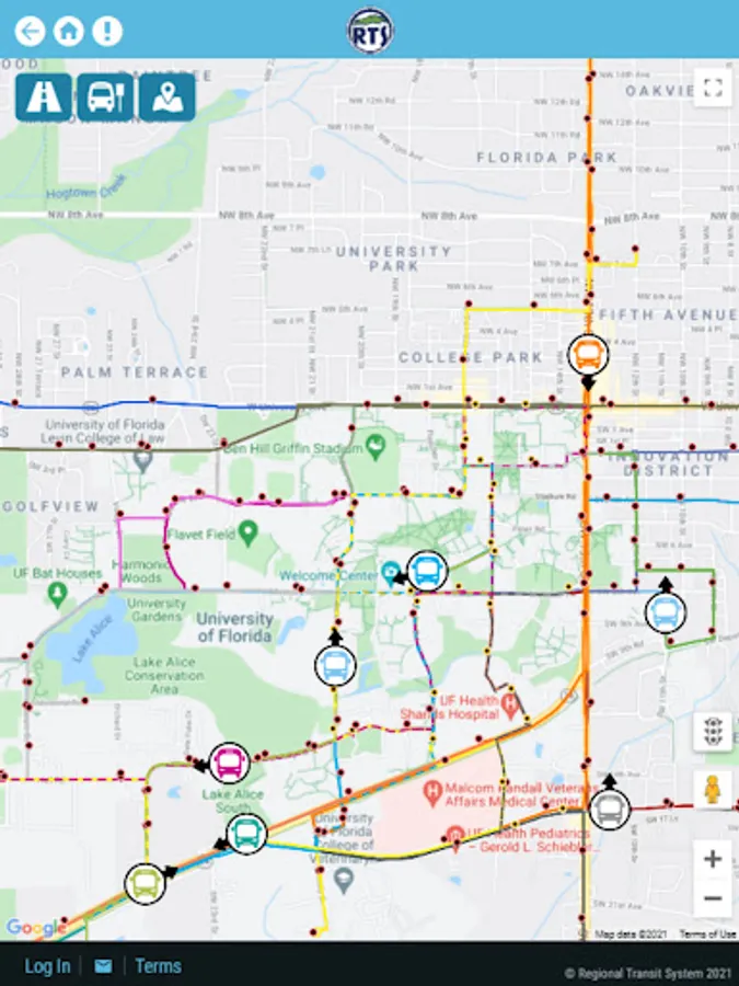 GNV RideRTS, your source for real-time bus arrival information in Gainesville, Florida. Residents, students and visitors to Gainesville now have real-time bus information at their fingertips. Track your bus, get bus arrival information, find nearby stops, find routes, and plan your trip from your mobile device! Save your favorite bus stop on the app to easily view stop arrival times. Subscribe to rider alerts and service detours and be informed before you start your journey. Set up text message alerts so you know when your bus is due. Click on the system map, select a route, and see where your bus is in real time. Enter your starting location and destination to access fast trip planning. Traveling with GNV RideRTS has never been this easy!