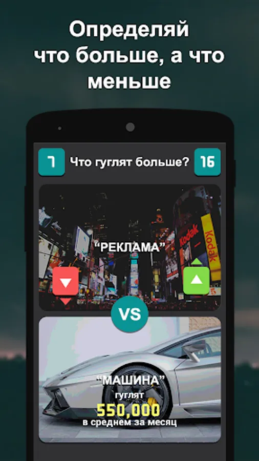 In this game you have to choose which of the two search queries was accomplished more often