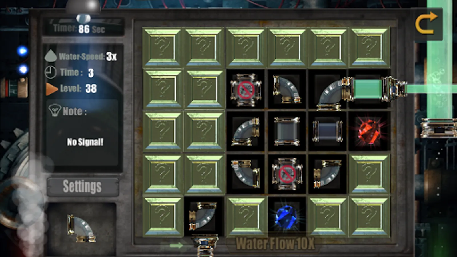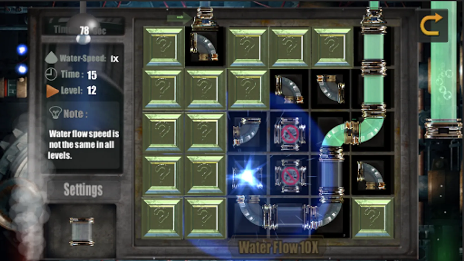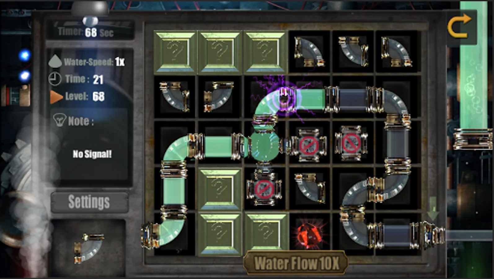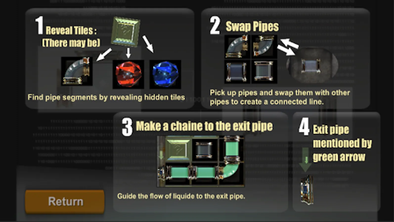 Find pipe segments by revealing hidden tiles and guide the flow of water to the exit pipe