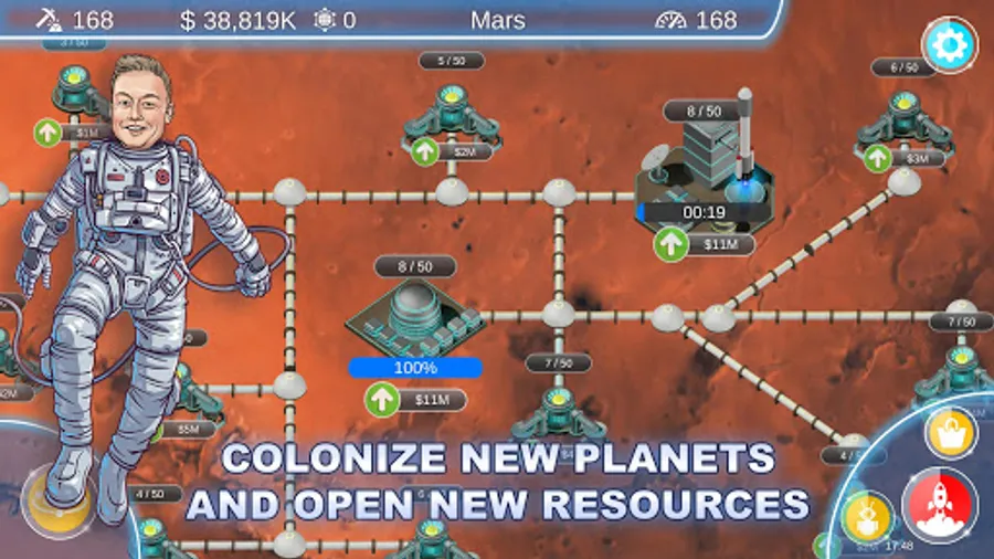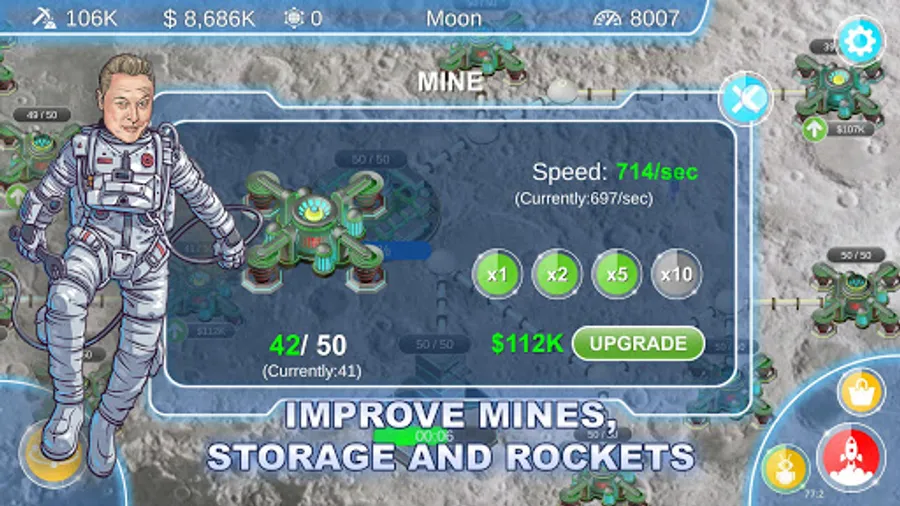 ⛏️ Manage your spacebases – build mines, improve storages and rockets.