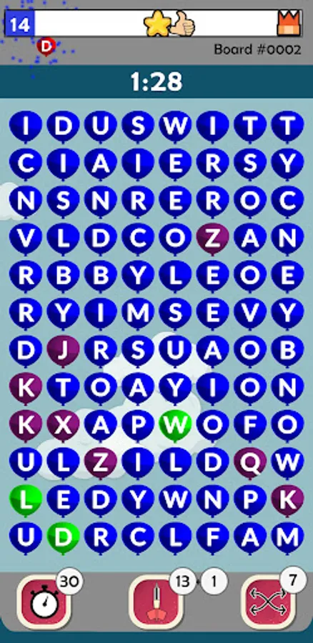 Words Up is a fun and challenging match-3 game where you find 4 (or more ) letter words in a letter grid. Each game board will have the same starting grid giving you the chance to find the best opening moves to propel yourself up the world rankings!