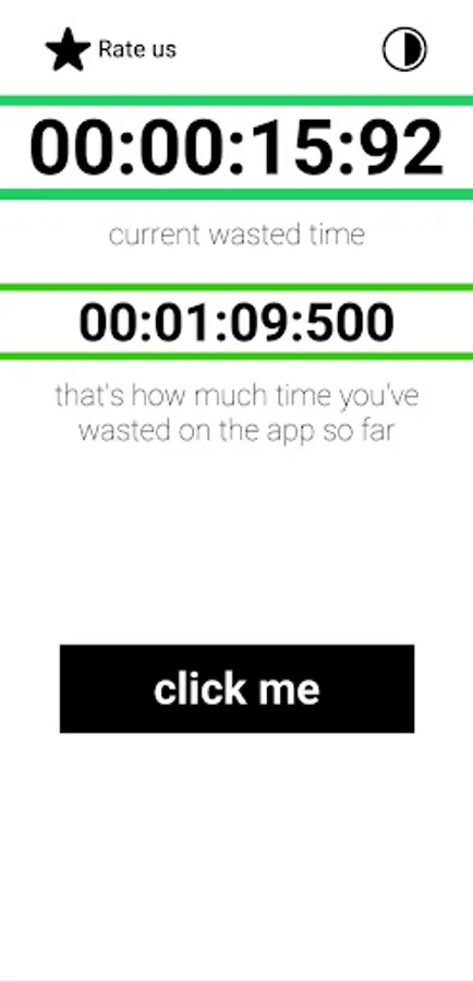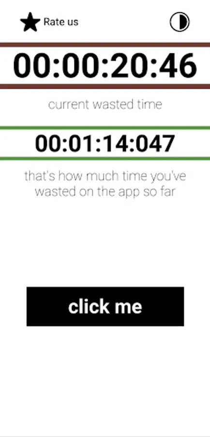 Do you want to do nothing? This is a simple, useful app if you want to waste your time or if you want to use this fantastic app as a timer or stopwatch when you play a game / sport or just to measure how much you wasted from your life with this tool.
