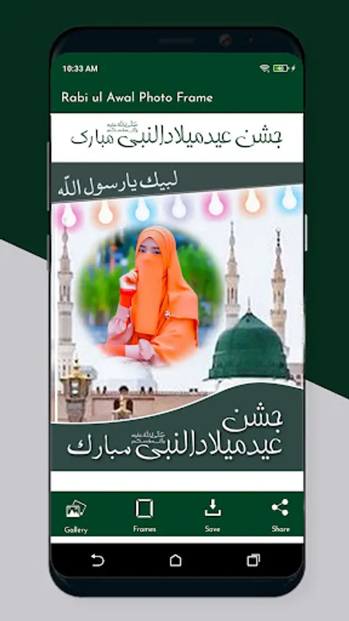 Rabi-ul-Awal-Eid Milad un Nabi Photo Frames Editor Enables to Take an Image or Select Any image From Gallery and Frame that Image in Eid Milad un Nabi Frames.