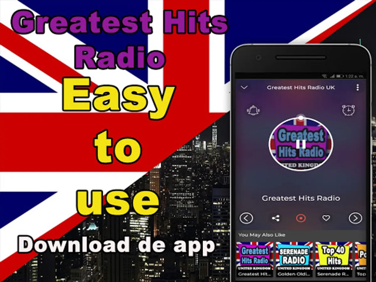 Greatest Hits Radio brings you the best radio stations from UK (United Kingdom). One of the Best collection of radio UK is here and its FREE!. Greatest Hits Radio UK Live collection of your favorite radios and FM stations from United Kingdom Radio live, streaming live on your Android devices. Easily find and listen Greatest Hits Radio broadcast. Donβt hesitate to select this app, it will be perfect app for your choice.