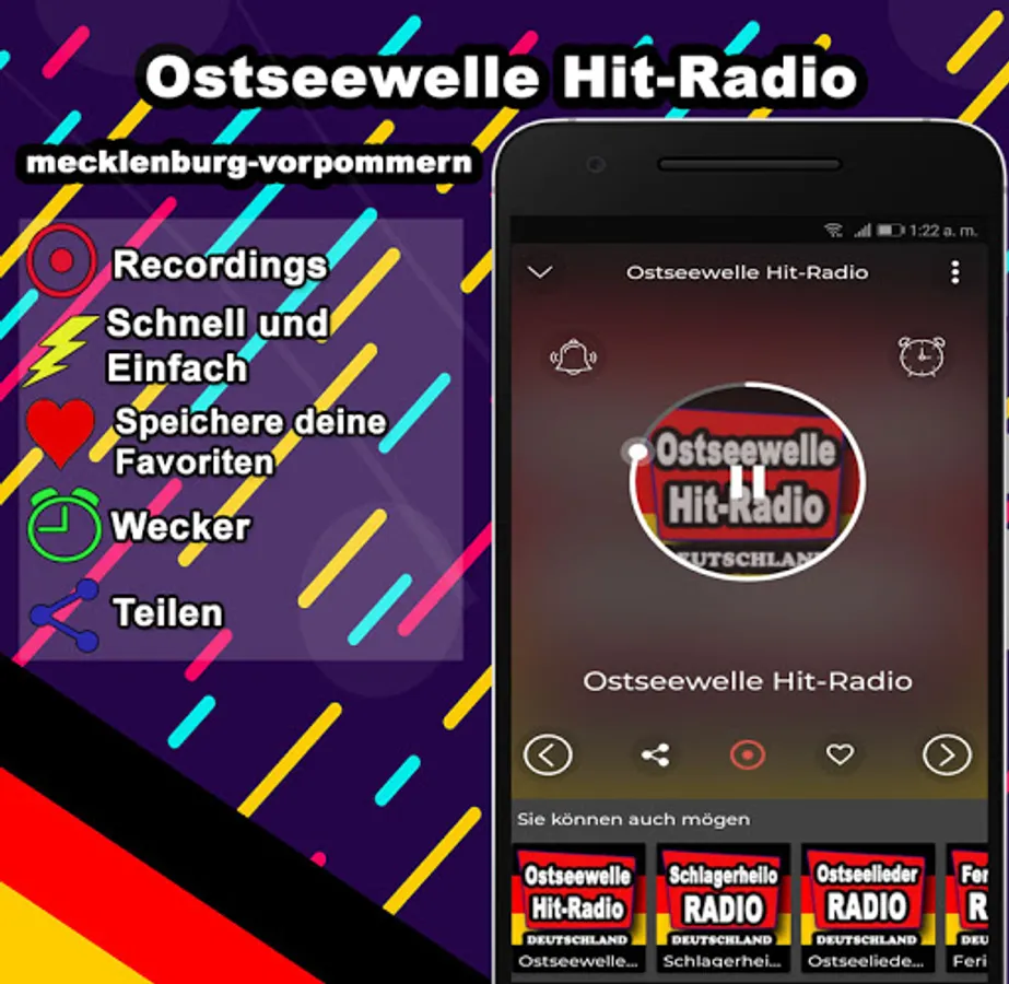 Listen to music with the app Ostseewelle Hitradio Mecklenburg-Vorpommern Live, an impressive app for Android!
