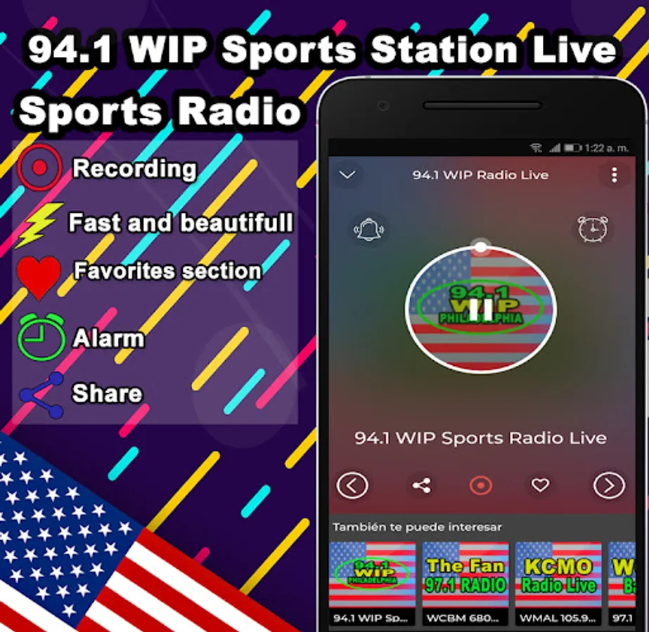94.1 WIP Live brings you the radio stations from Philadelphia, United States of America.! collection of your favorite radios and 94.1 FM stations from New York City, United States Radio live, streaming live on your Android devices. Easily find and listen 94.1 WIP Sports Station Live FM broadcast.