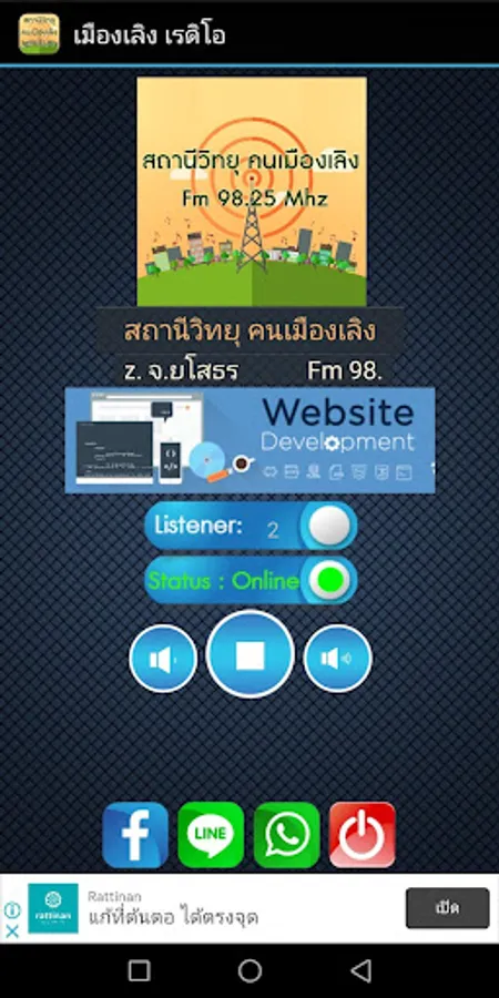Name of Khon Kaen Loeng Radio Station 98.25 Mhz, Loeng Nok Tha District, Yasothon Province, telephone number 045-782248 and 089-9464936