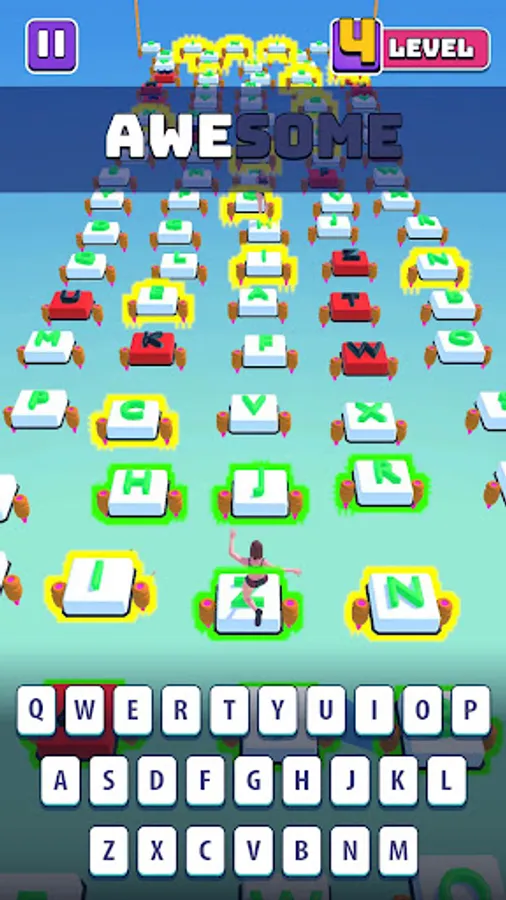 The world is full of letters , jump on them to move forward. But you must be careful, some letters let you move forward, some fail you and some won't help you anyhow.