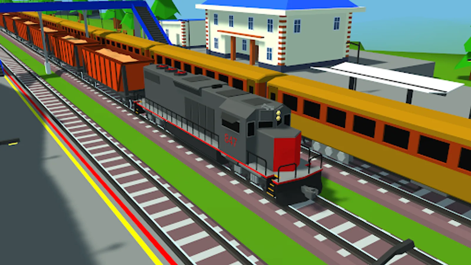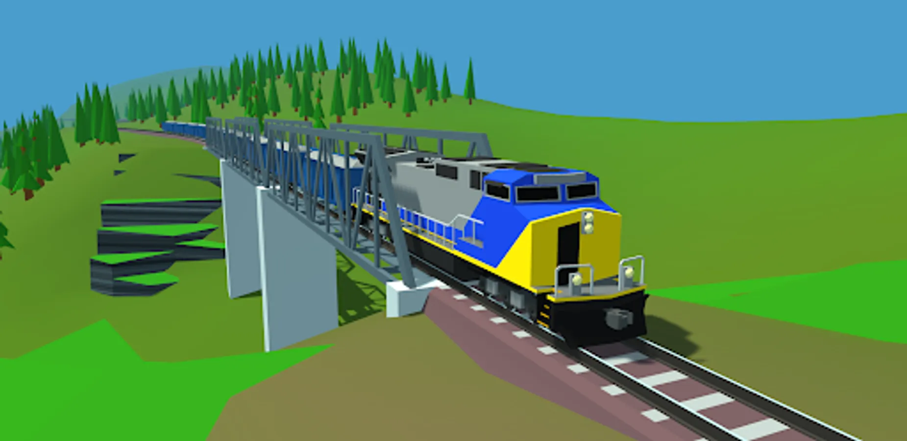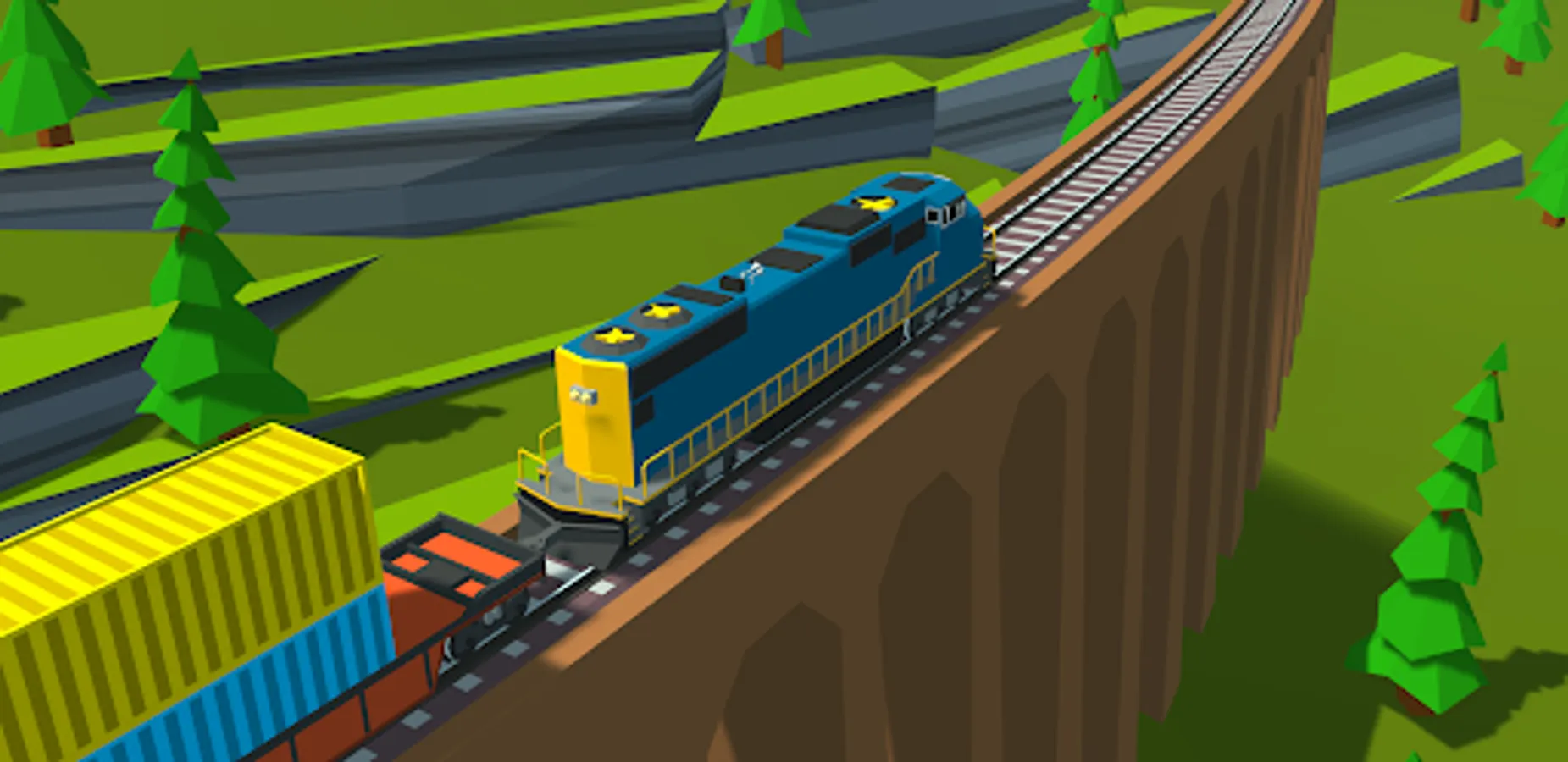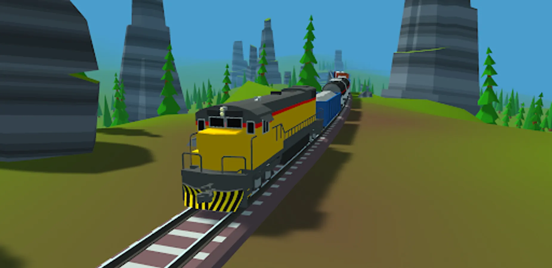 Experience the thrill of driving a freight train with TrainWorks, a low poly train simulator game for Android. Transport goods across a vast and detailed map, featuring forests, mountains, and cities.