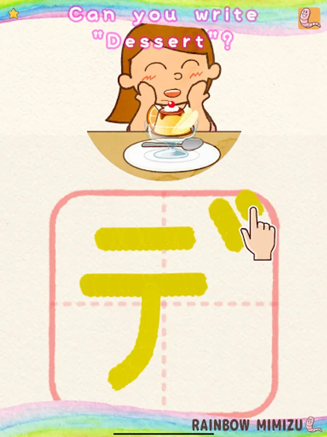 By tracing dashed line, your child learn to write perfect Katakana, all while receiving encouragement from cute characters!