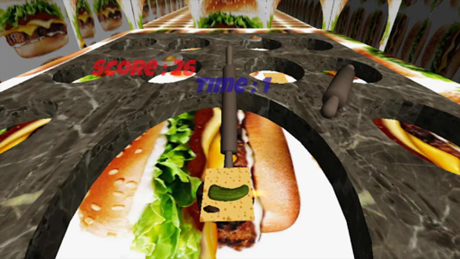 Chef will chase the burger through kitchen , grill , tables and buffet .