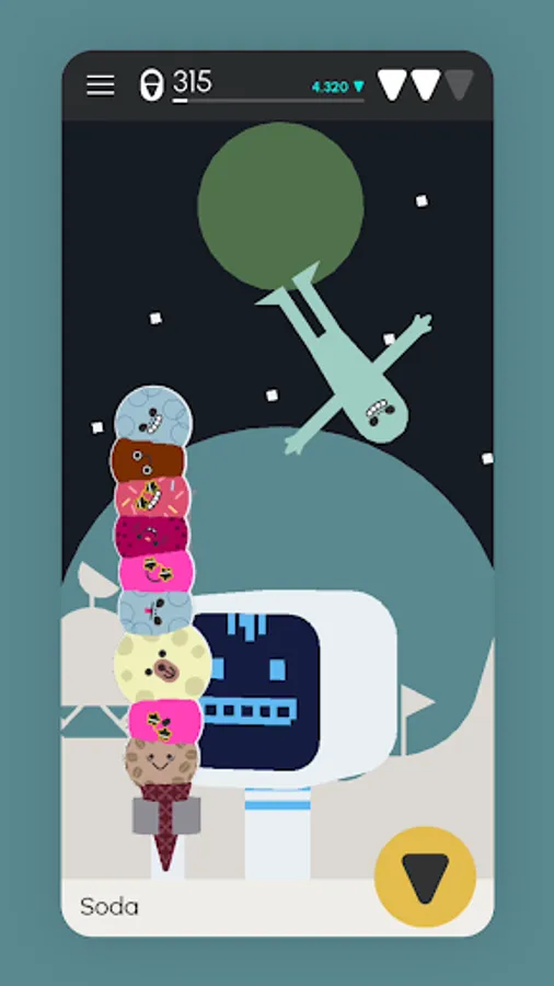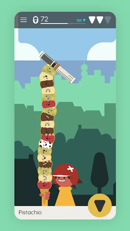 All kinds of obstacles will fall as you stack ice cream scoops to make it harder to maintain your balance, pigeons, frisbees, christmas elves and even aliens and satellites! Use your skills to avoid the obstacles and get the maximum score by stacking as many ice cream scoops as you can.