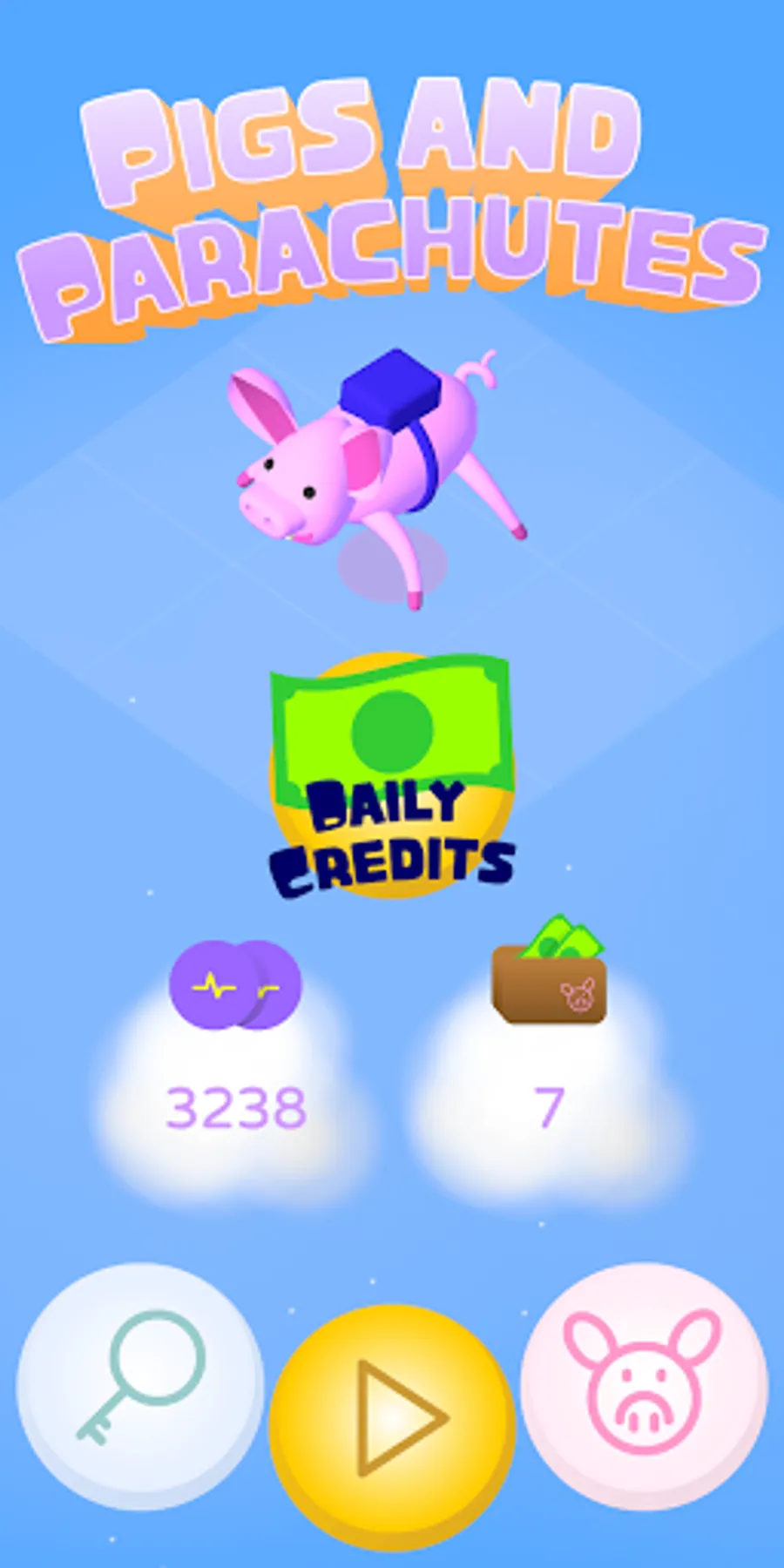 Experience easy-to-play one tap controls as you fall through the sky and clouds while you try to collect mission symbols. Watch out! You have a parachute with you but to open it you need to collect all symbols. Fly, rotate and try to solve the puzzle and extend your game. Have fun clearing out collectables with lots of unpredictable twists in this logical and puzzle solving funny pig game.
