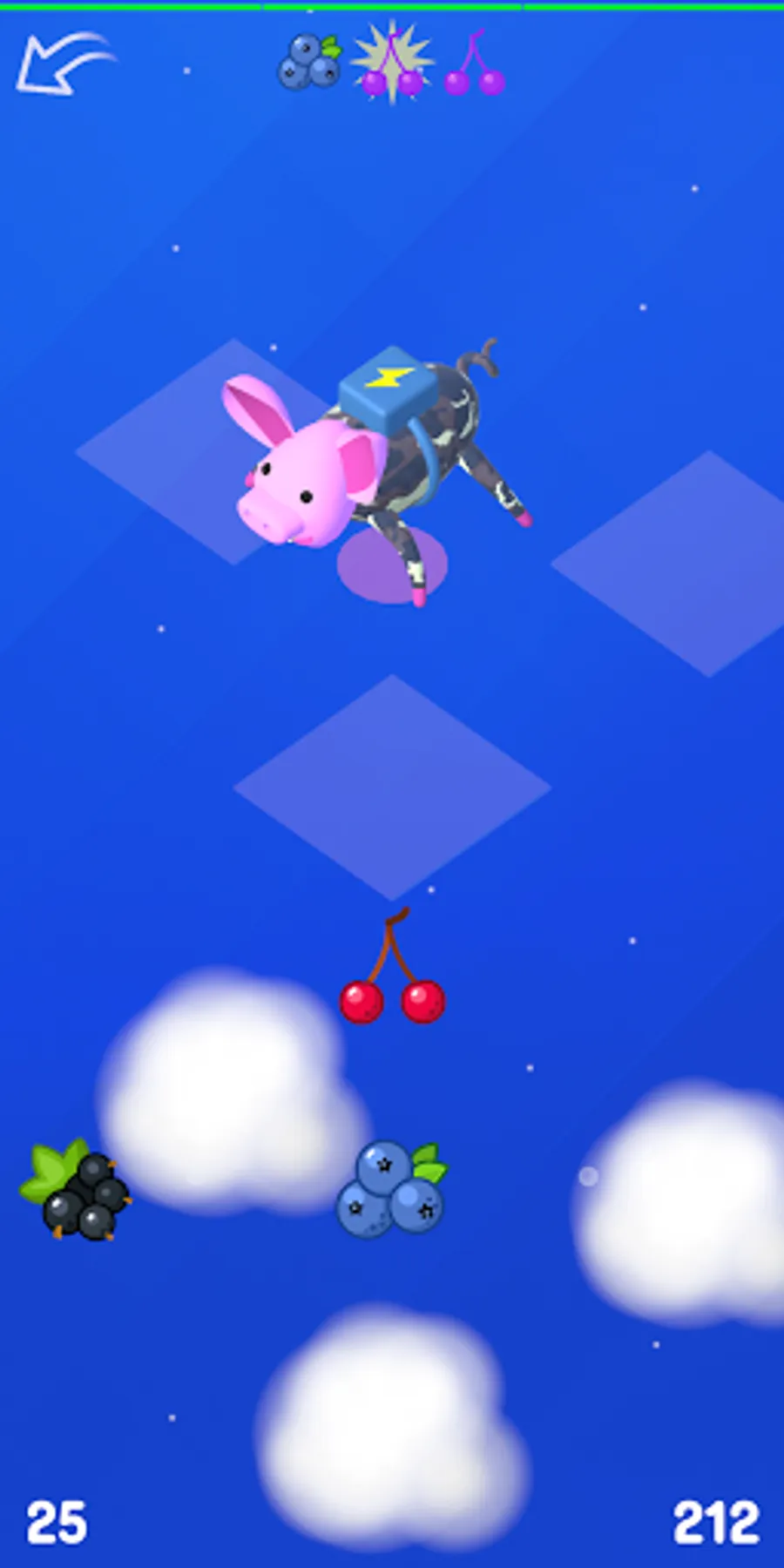 Pigs only roll a side! This means that you can go either left or right by touching your phone screen bottom left or right corner. When the pig rolls a side, the air resistance makes it move one field to the back too. At first it might seem tricky, but if you handle it well you'll be able to complete the game. There are 9 fields where a pig can be. While falling, these fields will have collectable symbols or clouds or they can be empty. Avoid the clouds, as they will reduce energy and collect symbols in a combo pattern shown at the top. The symbols must be collected in order asked on top of the screen.