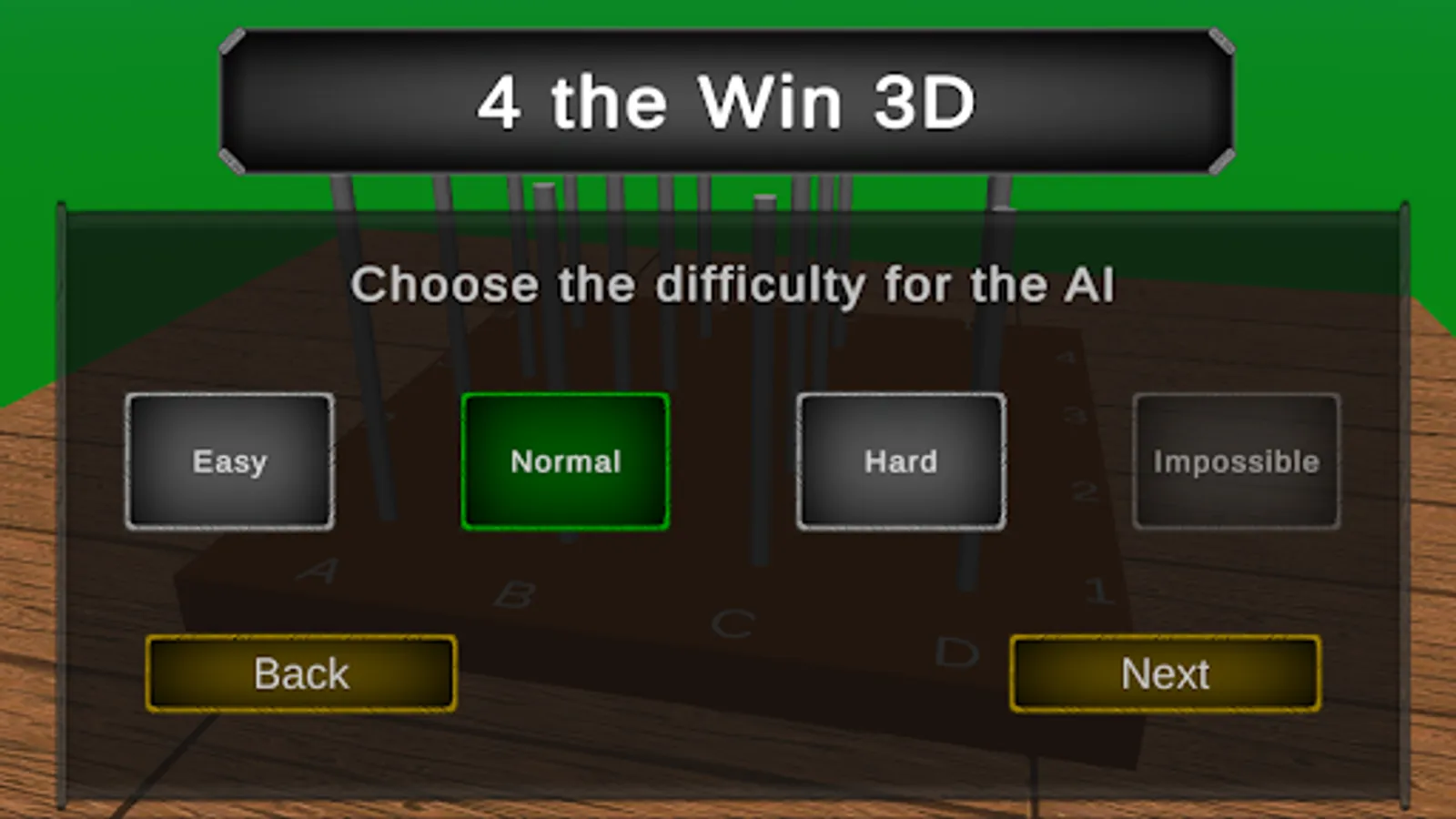 Everyone knows "Connect 4" or "4 in a Row" as a two-dimensional game, but in this variation there is another dimension. So you can win not only in one level horizontally, vertically and diagonally, but in all four and also through space. Challenge your friends, family or any other player or play against the 3 difficulties of the AI and come up with the perfect strategy to never lose again!