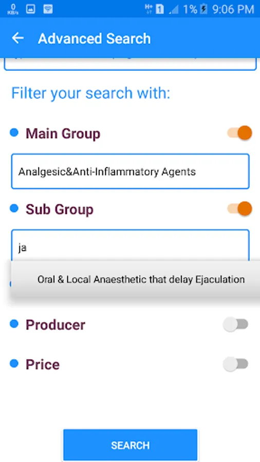 index it includes too many tools for searching, you can search by trade name,active materials and drug groups. You can also search by price or a company.