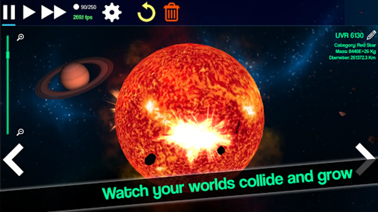 -With its complete editor, create asteroids, dwarf planets, rocky planets, gas planets, four different kinds of stars and black holes. Furthermore, you will get a tool to build complete proto-solar systems with just one touch. Create a universe with your fingers!