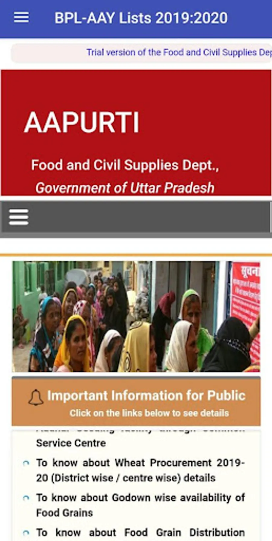 App is developed to find online ration card,BPL List,AAY List,NFSA List,Non-NFSA List,e-Ration Cards issued by food department All States.This is all in one android app for APL Ration search,BPL Ration Card search,BPL list,AAY list,NFSA list,Ration dealer status,FPS code name,PSA owner location.All information displayed in this app is loaded from the website of food and supply department,Indian Ration Card List,so you can check more information about your present Ration cards status in the app.