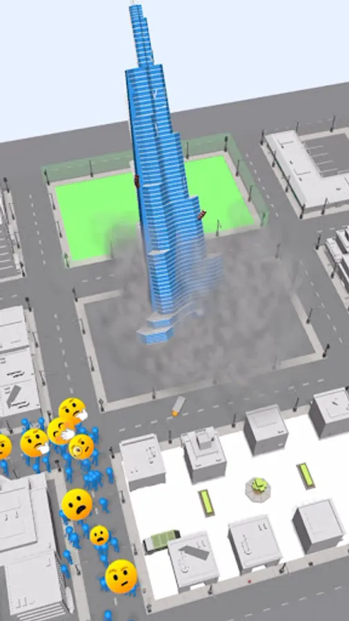 Inspect the building carefully before cutting the ropes by swiping on them. Each cut through the ropes will change the balance of the building. Beware of civilians & buildings around the structure and drop the structure right on spot!