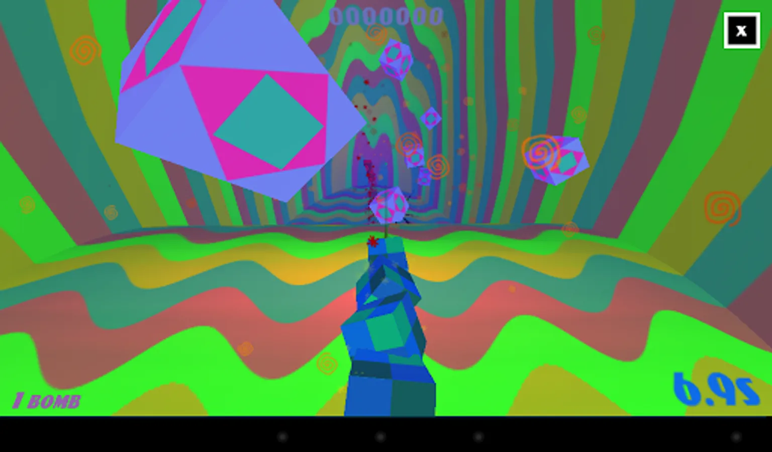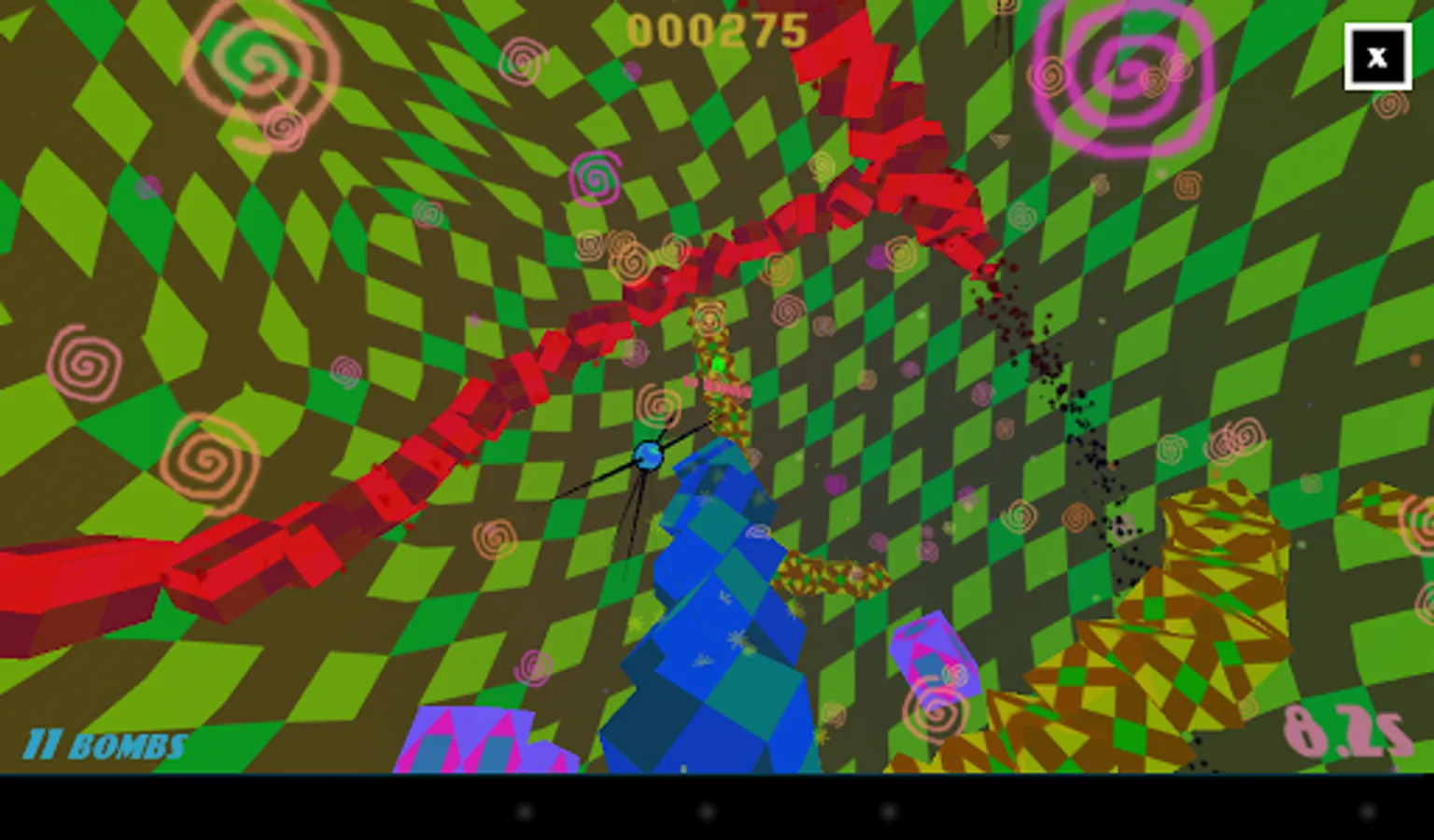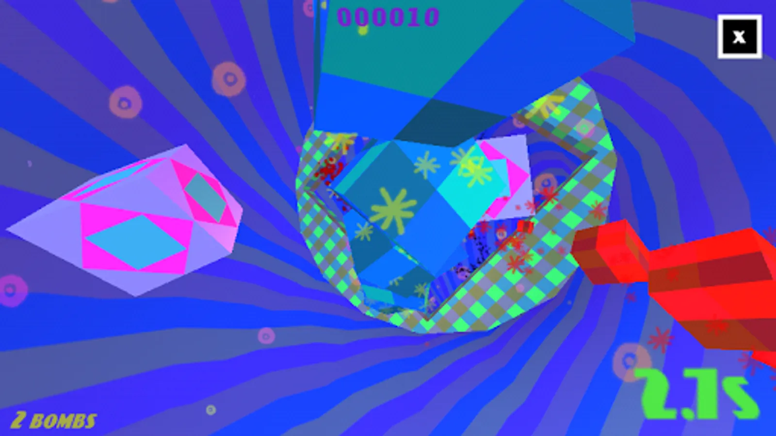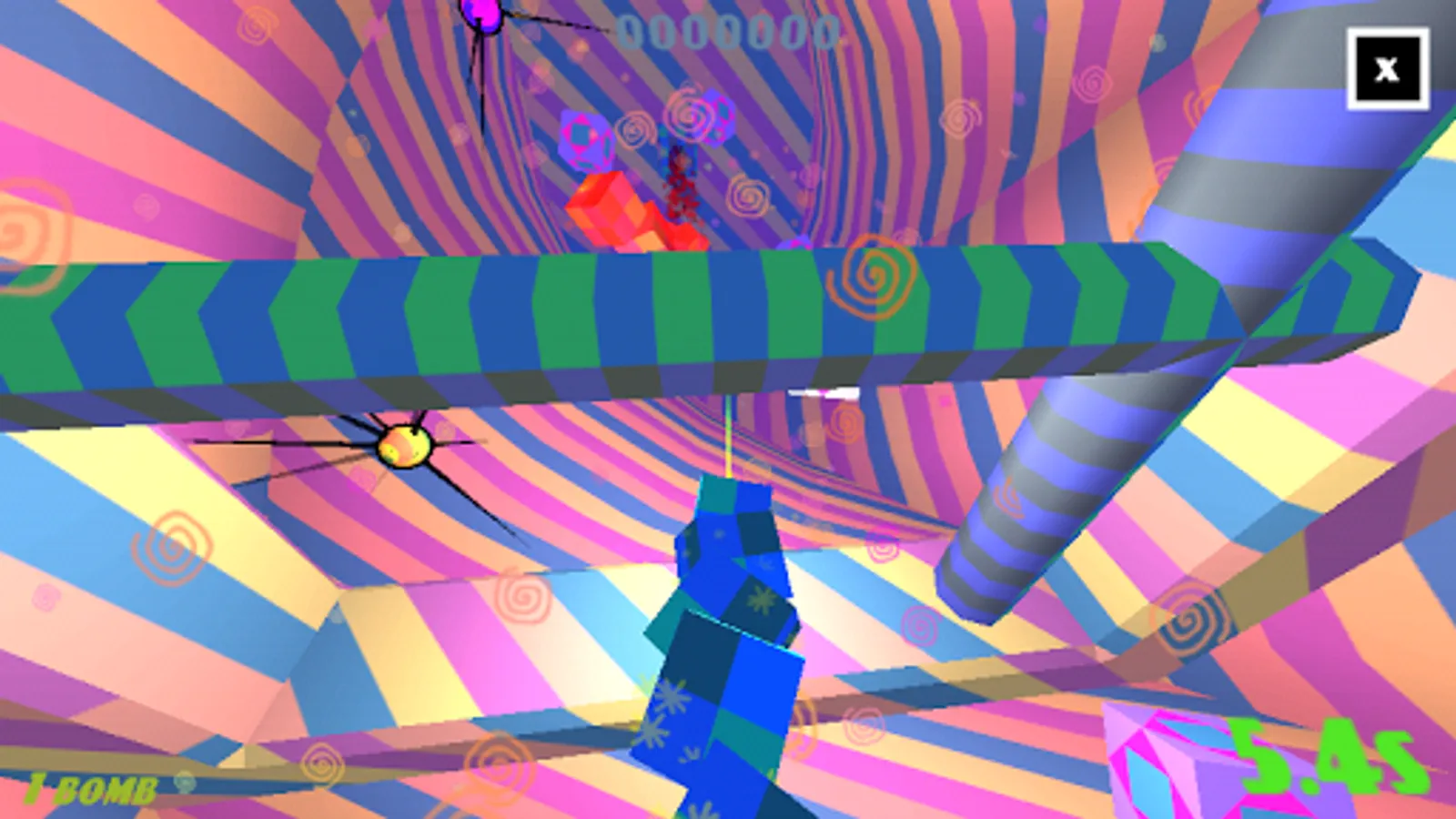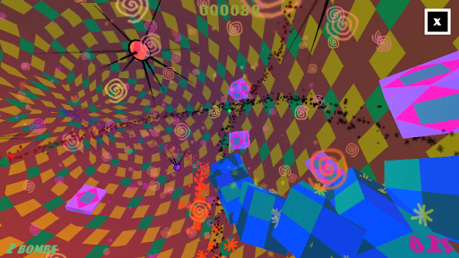 You're a space-snake in a box, every 10 seconds your tail becomes a wall, you can use bombs, and the colors are pretty strange. There are other snakes and boxes and wtf