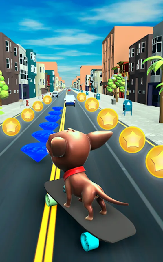 You love dogs, you would surely love this dog race where a cute dog on skateboard loves to race . take the control of skate board and help this cute dog. You would surely love this super cute dog racing fast and slow on skate board in traffic rush, help navigate this cute dog riding the skate board on highway, win the race. This dog adventure game is firs of its kind , where is dog is in action, running away for win the prize. It is rush hour on highway and this little cute puppy wants to ride the skate board.