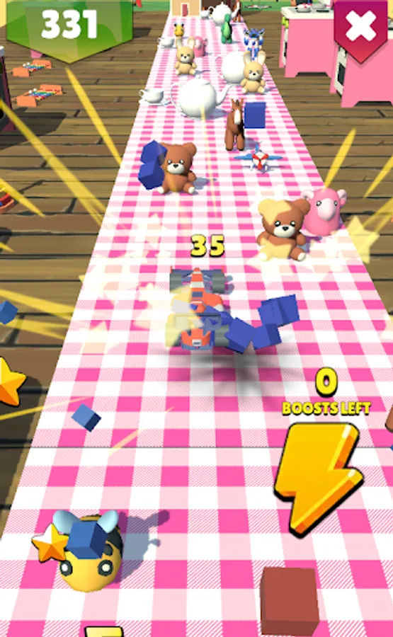 - Simple, fun and addictive gameplay. Tap to drive and smash into as many toys as possible!