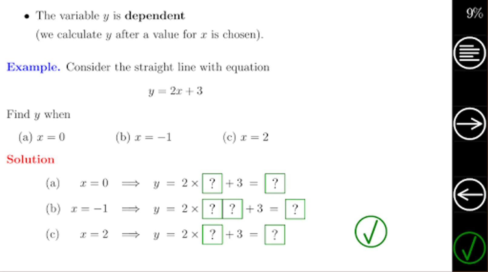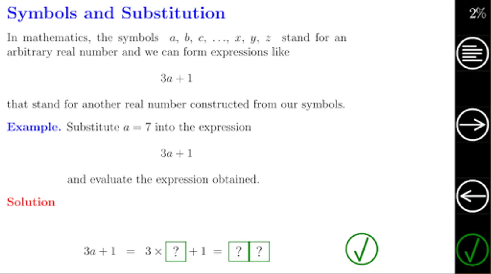 * Studying mathematics is best done by working through examples and exercises. There are many interactive examples and exercises in this tutorial that must be completed to achieve 100% progress.
