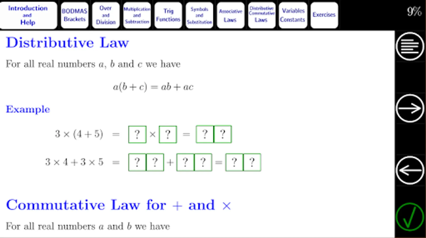 * Works without internet so that you can learn Algebra while travelling in the train, bus etc. Internet only required for links to privacy policy and other tutorials.