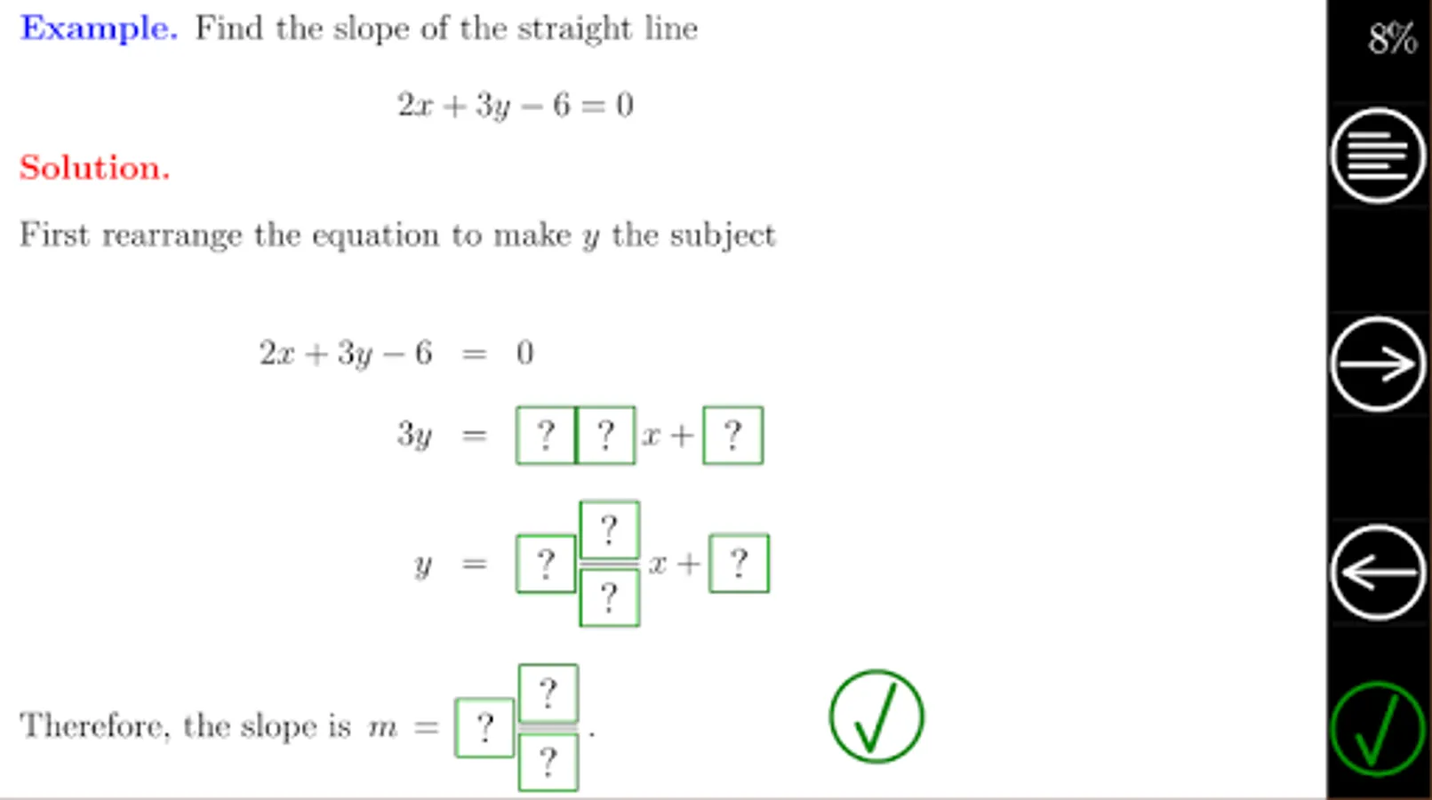 * Studying mathematics is best done by working through examples and exercises. There are many interactive examples and exercises in this tutorial that must be completed to achieve 100% progress.
