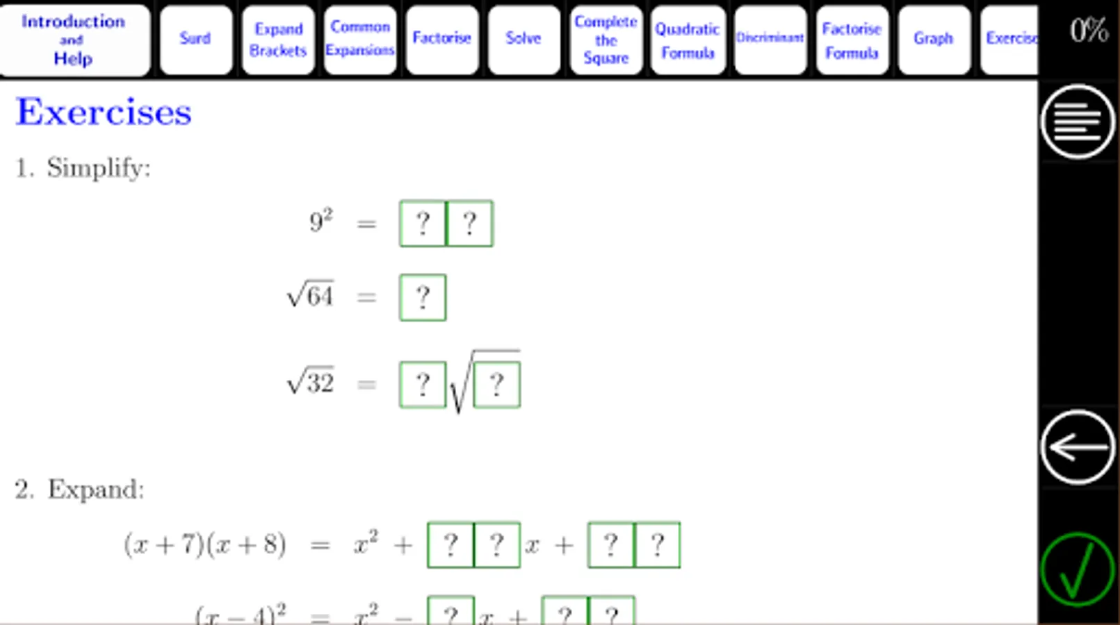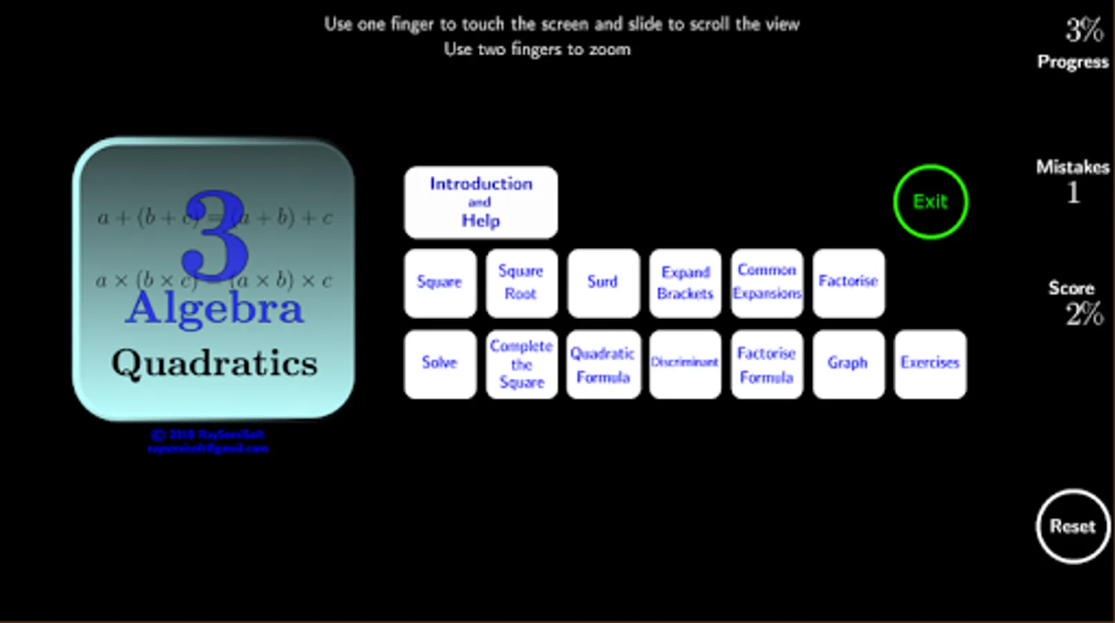 * Works without internet so that you can learn Algebra while travelling in the train, bus etc. Internet only required for links to privacy policy and other tutorials.