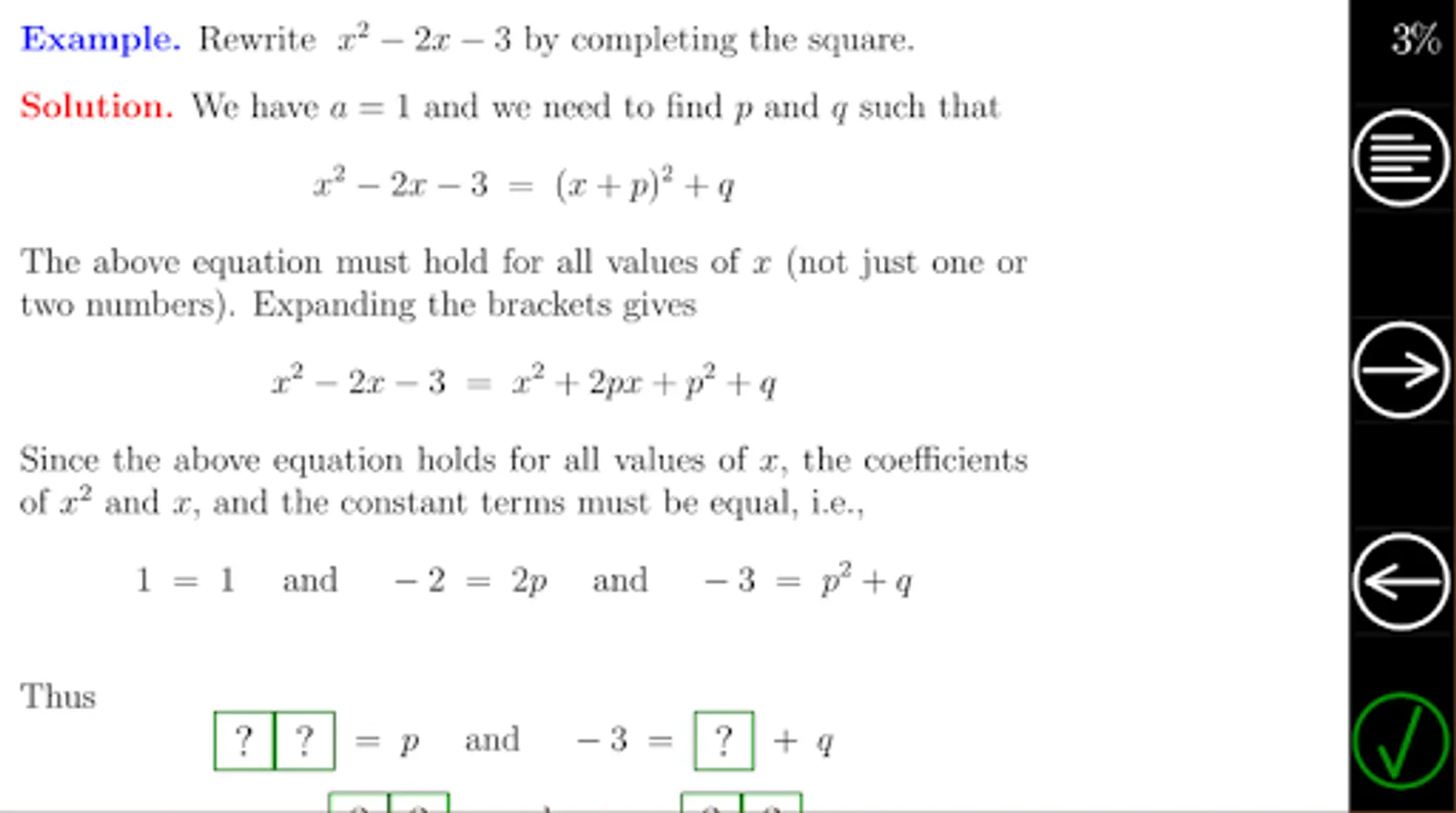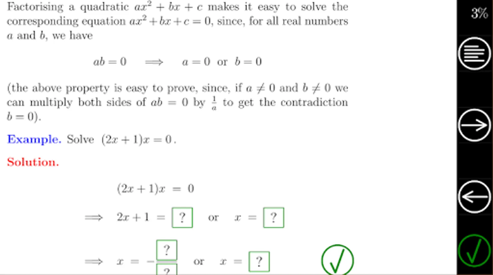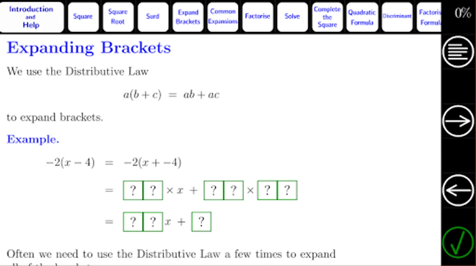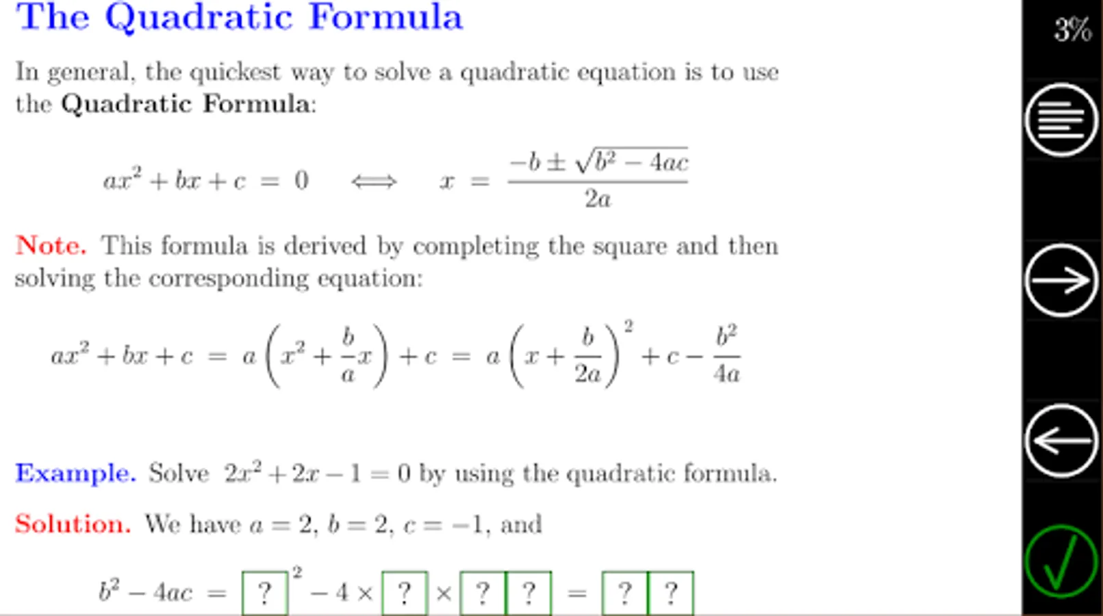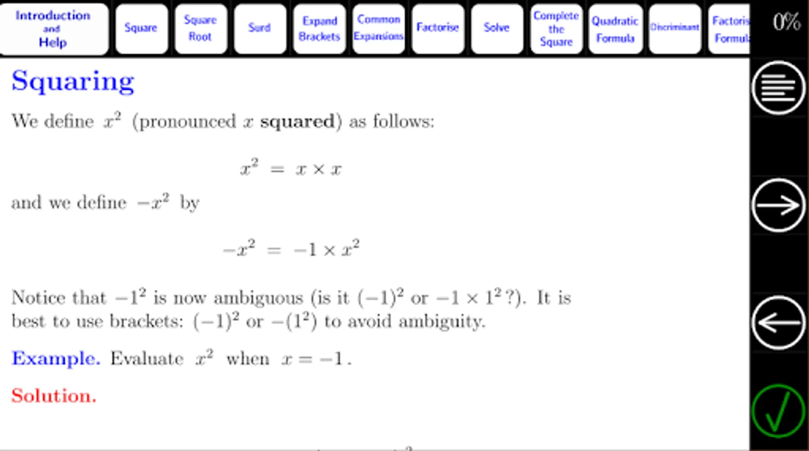 * Studying mathematics is best done by working through examples and exercises. There are many interactive examples and exercises in this tutorial that must be completed to achieve 100% progress.