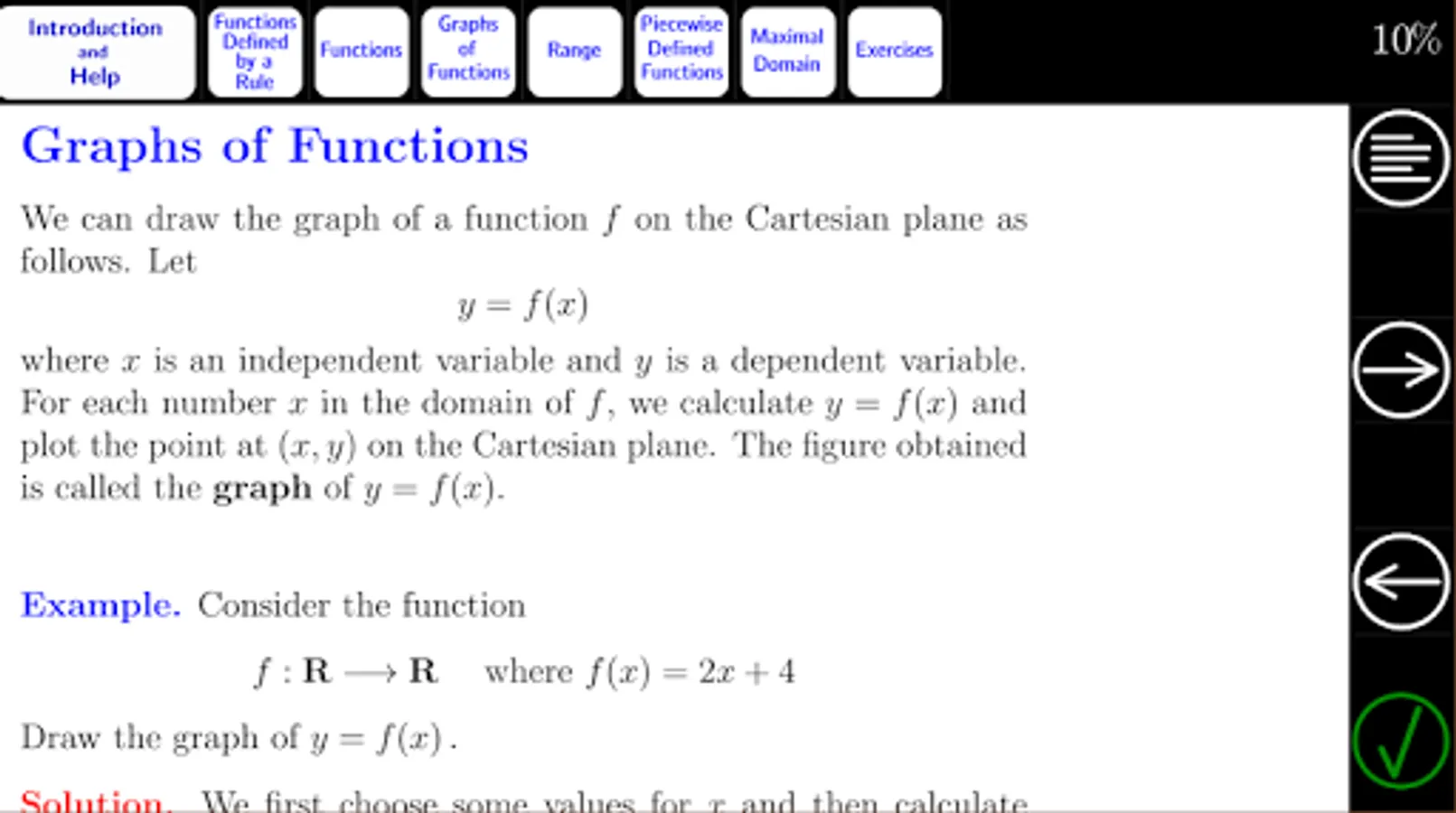 * Studying mathematics is best done by working through examples and exercises. There are many interactive examples and exercises in this tutorial that must be completed to achieve 100% progress.