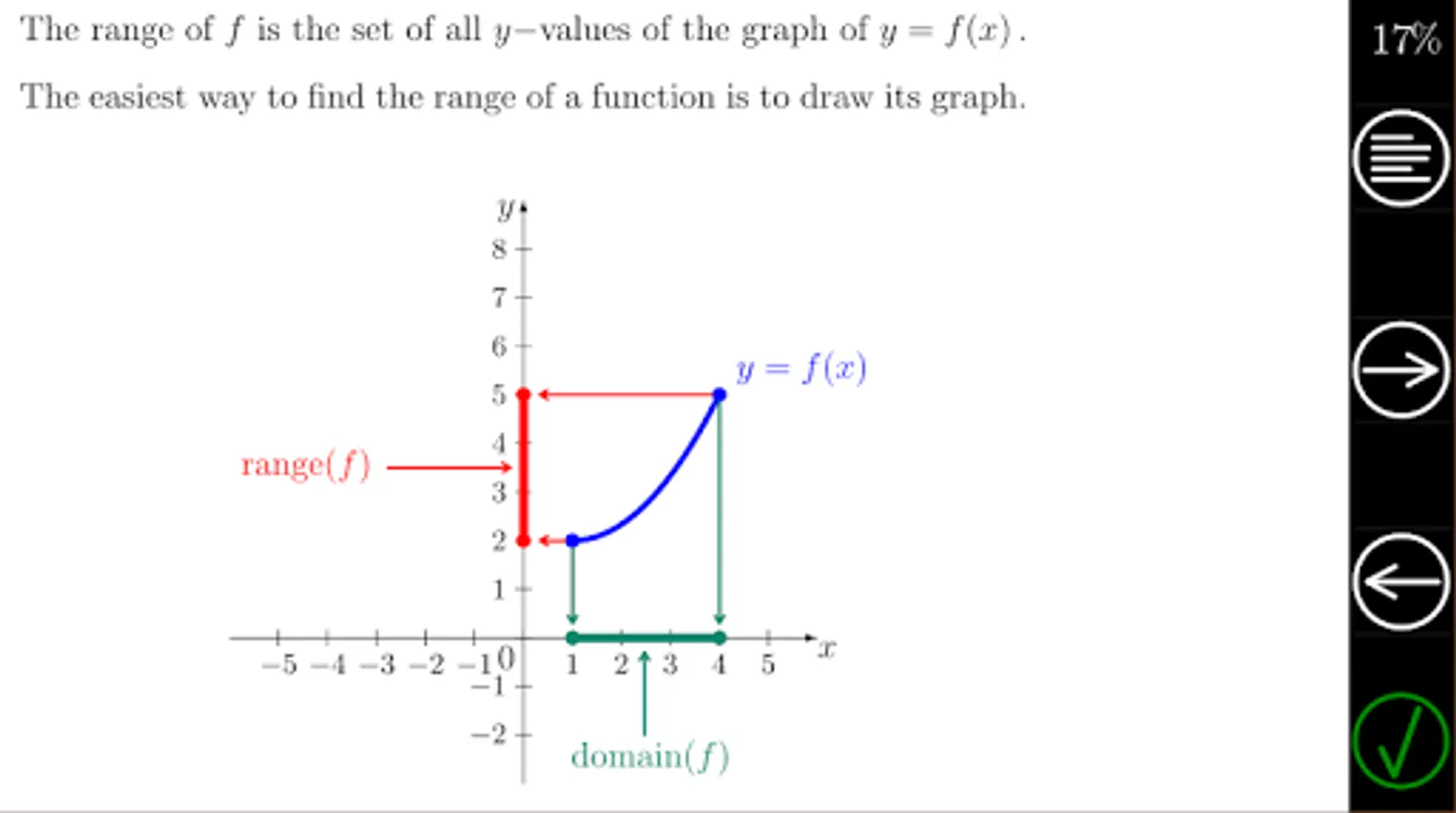 In this tutorial, we first look at functions defined by a rule (or formula). We then look at more general functions defined with a domain and codomain, and we use the graph of a function to find the range of the function.