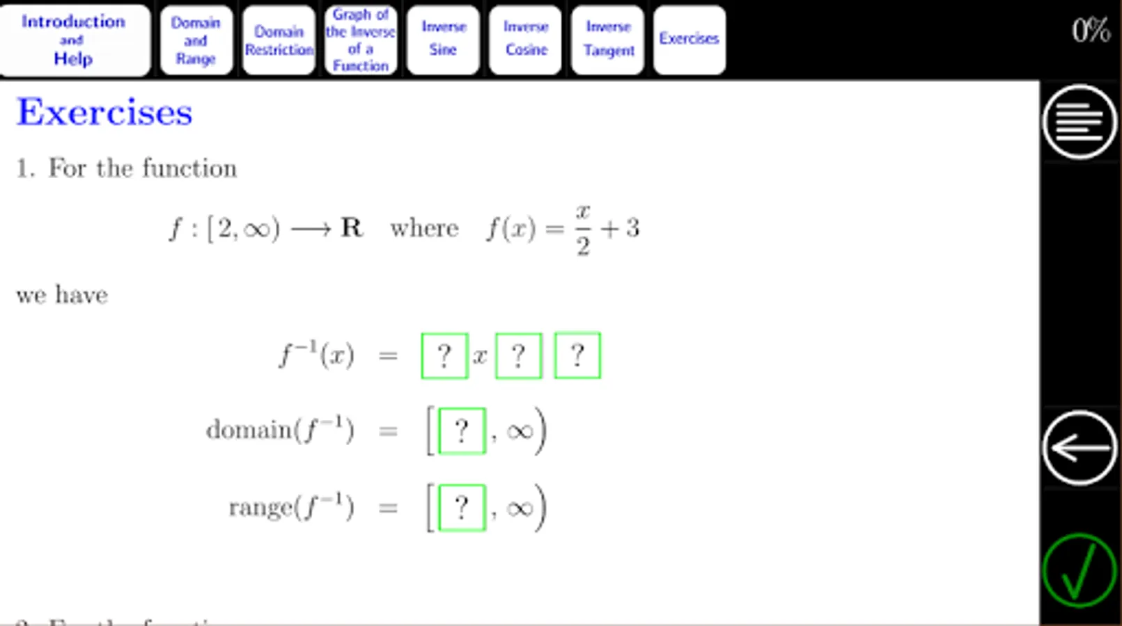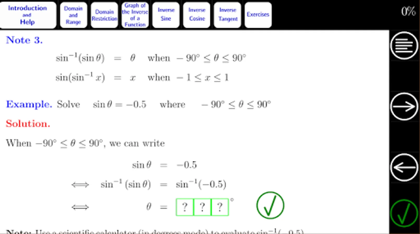 * Studying mathematics is best done by working through examples and exercises. There are many interactive examples and exercises in this tutorial that must be completed to achieve 100% progress.