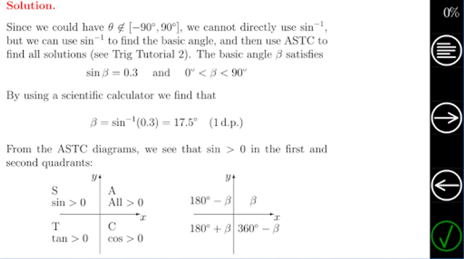 Finally, we use a domain restriction for each of the trigonometric functions sine, cosine and tangent to make them invertible, and we use these inverse trigonometric functions to solve trigonometric equations.