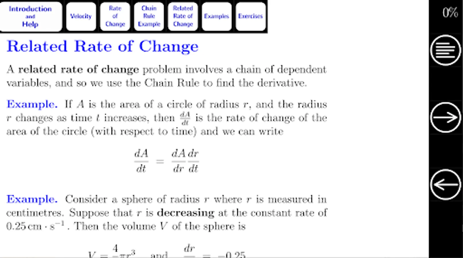 A related rate of change problem involves a chain of dependent variables, and so we use the Chain Rule to find the derivative.
