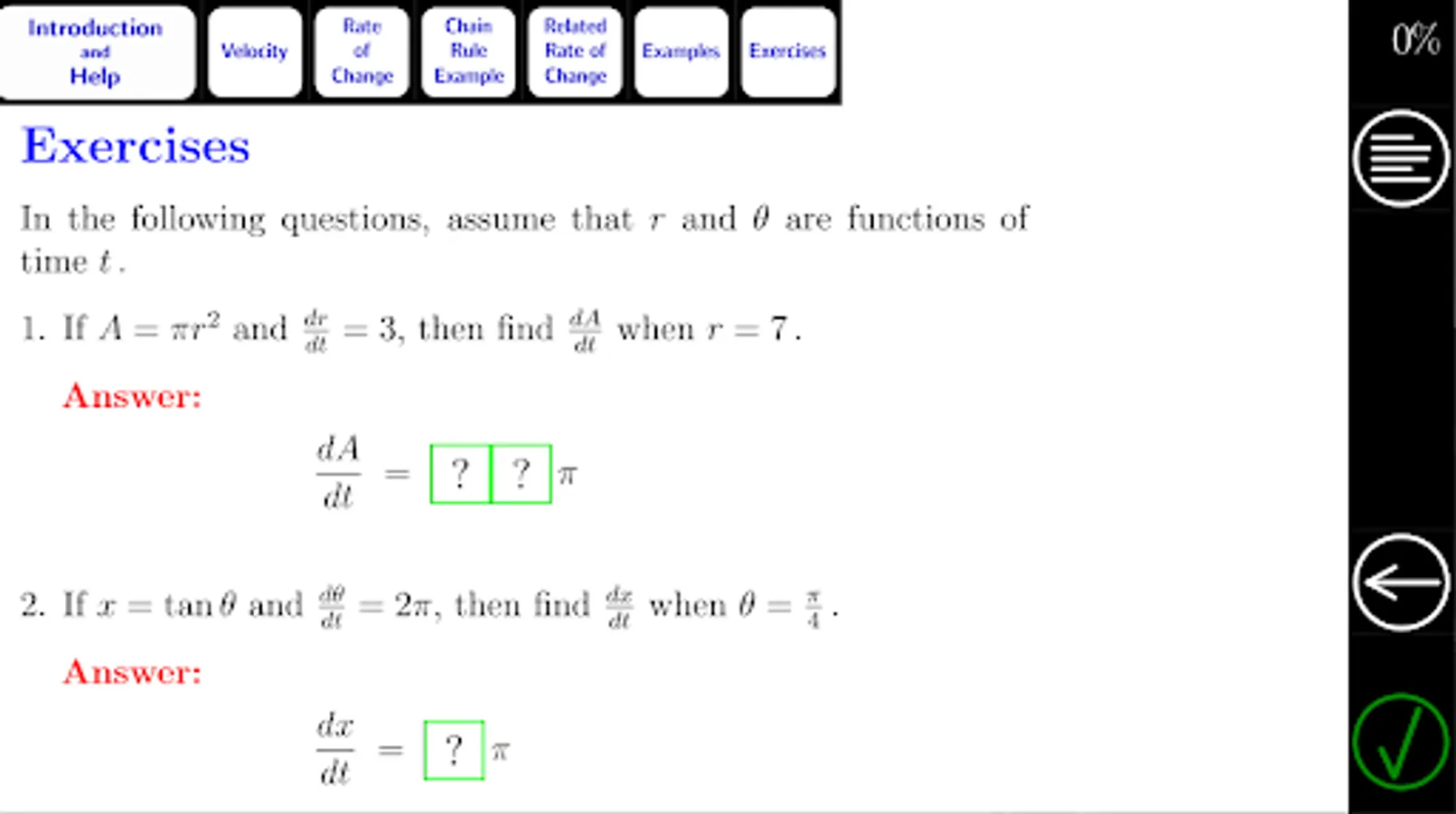 * Studying mathematics is best done by working through examples and exercises. There are many interactive examples and exercises in this tutorial that must be completed to achieve 100% progress.
