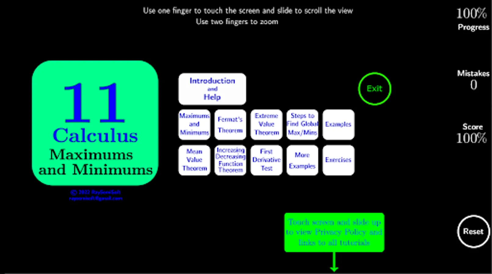 * Studying mathematics is best done by working through examples and exercises. There are many interactive examples and exercises in this tutorial that must be completed to achieve 100% progress.