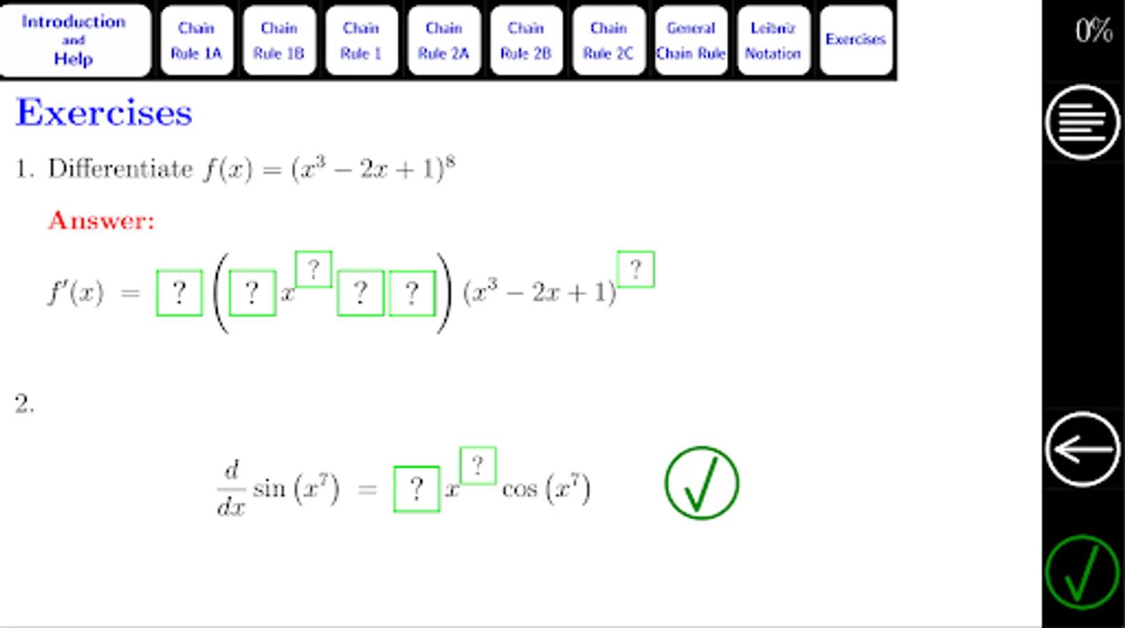 * Studying mathematics is best done by working through examples and exercises. There are many interactive examples and exercises in this tutorial that must be completed to achieve 100% progress.