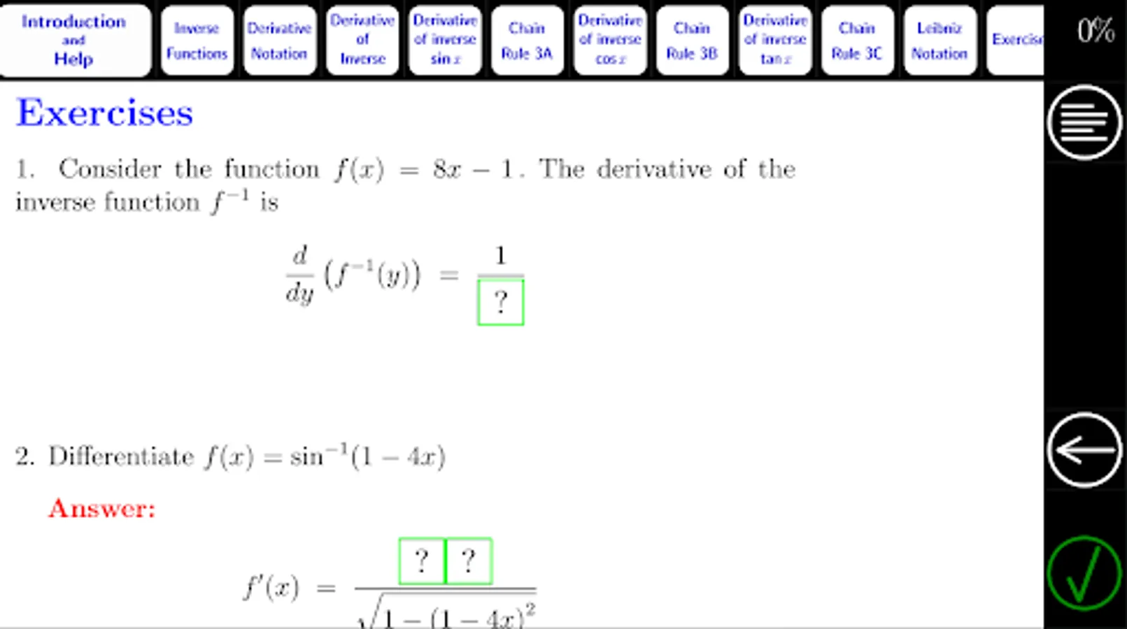 * Studying mathematics is best done by working through examples and exercises. There are many interactive examples and exercises in this tutorial that must be completed to achieve 100% progress.