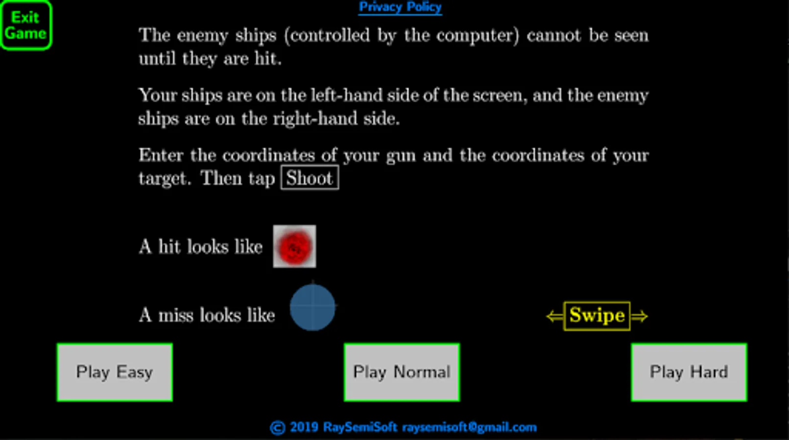 The enemy ships (controlled by the computer) cannot be seen until they are hit.