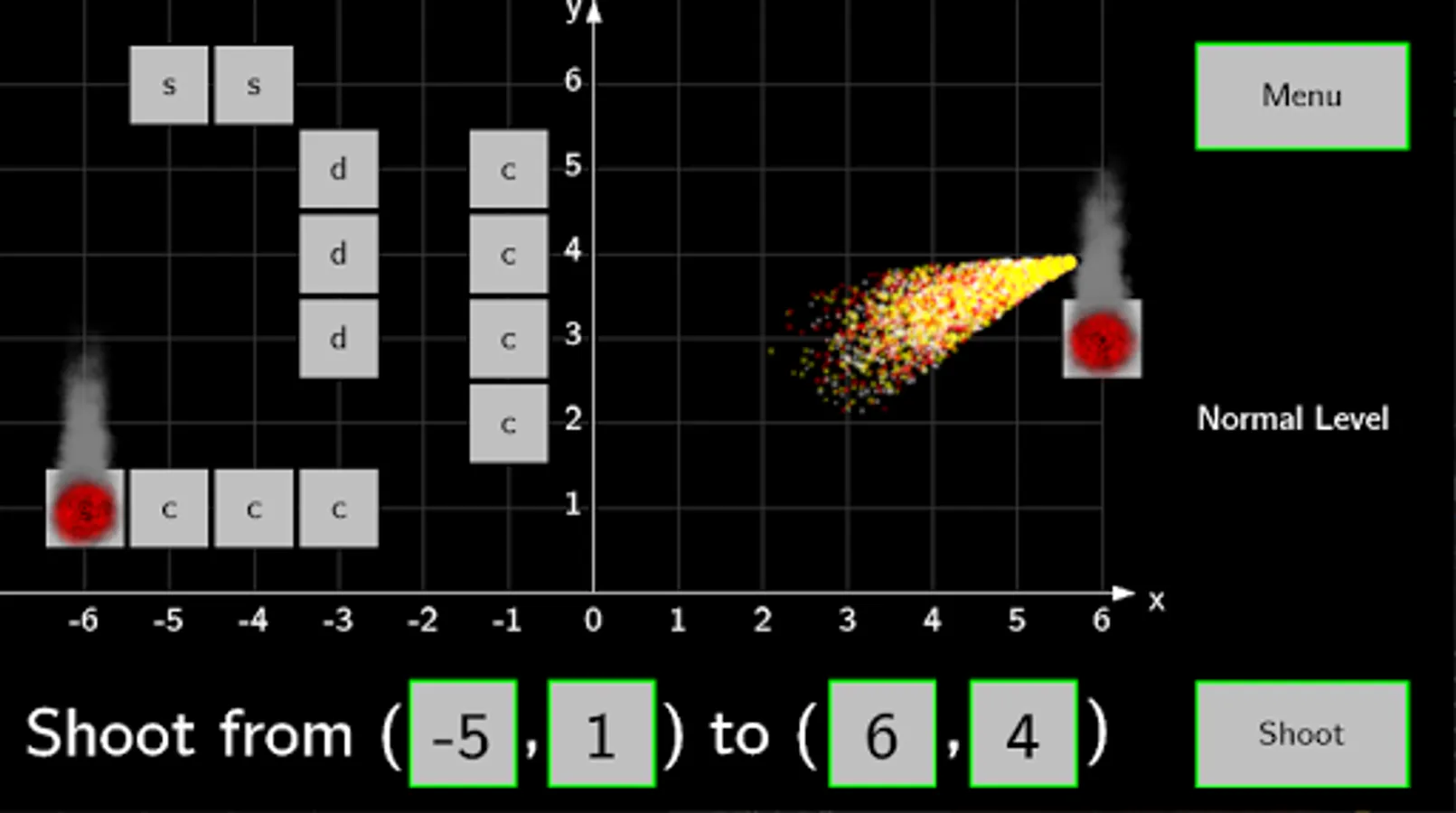 You shoot by entering the coordinates of your gun and the coordinates of your target.