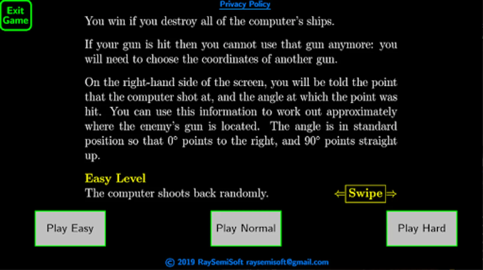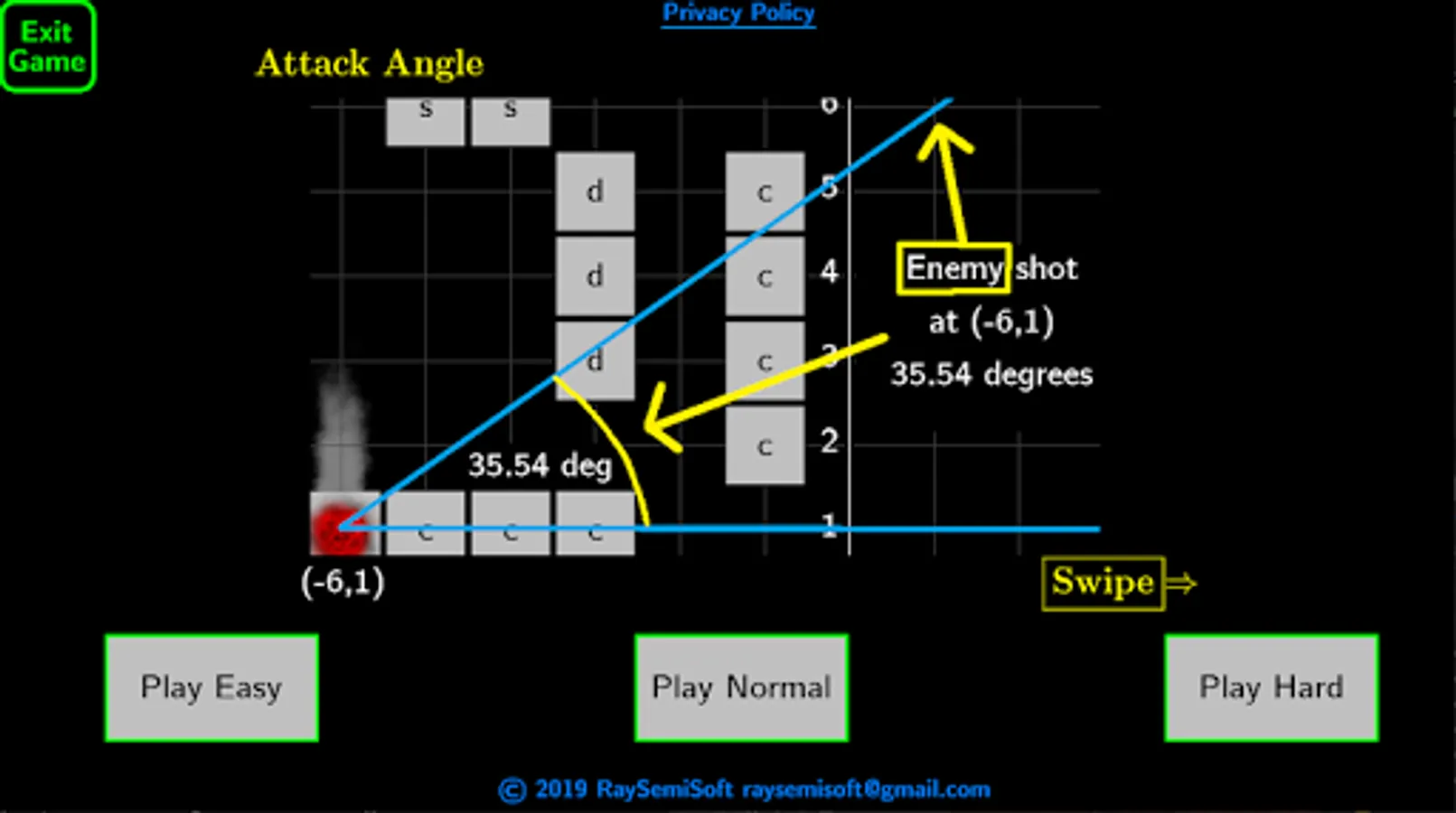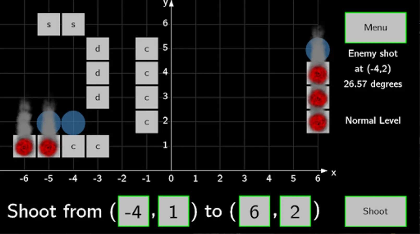 To win, you will need to use the attack angle to find where the enemy gun is located.