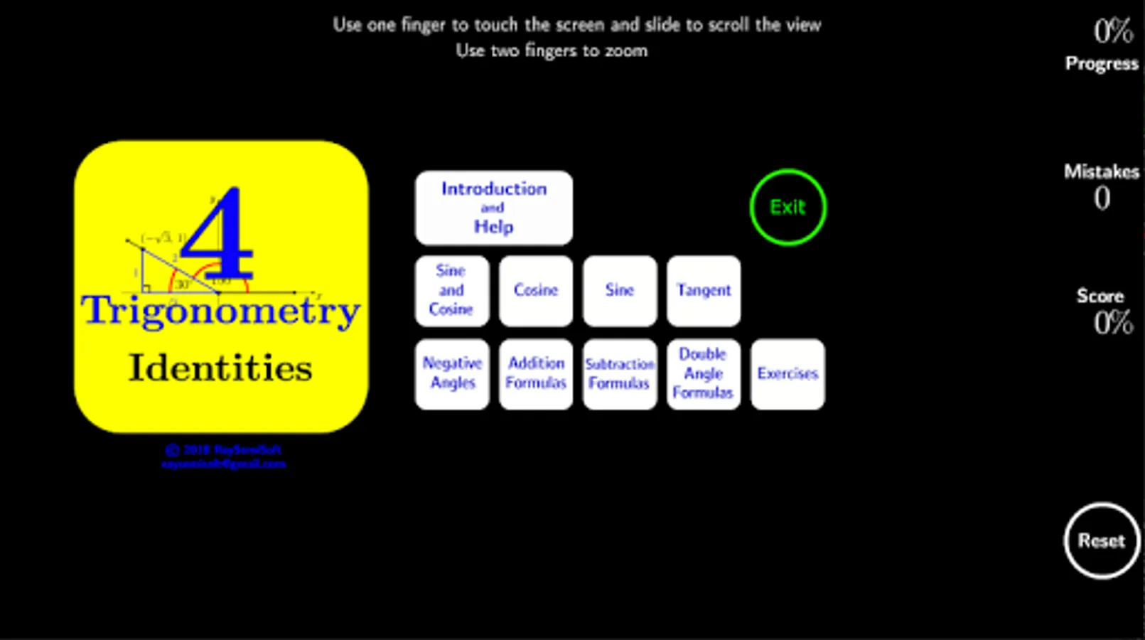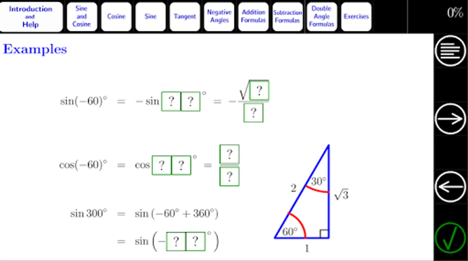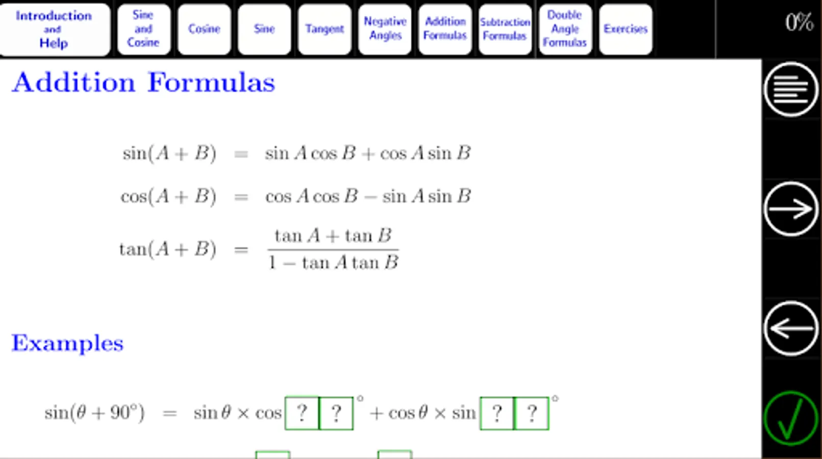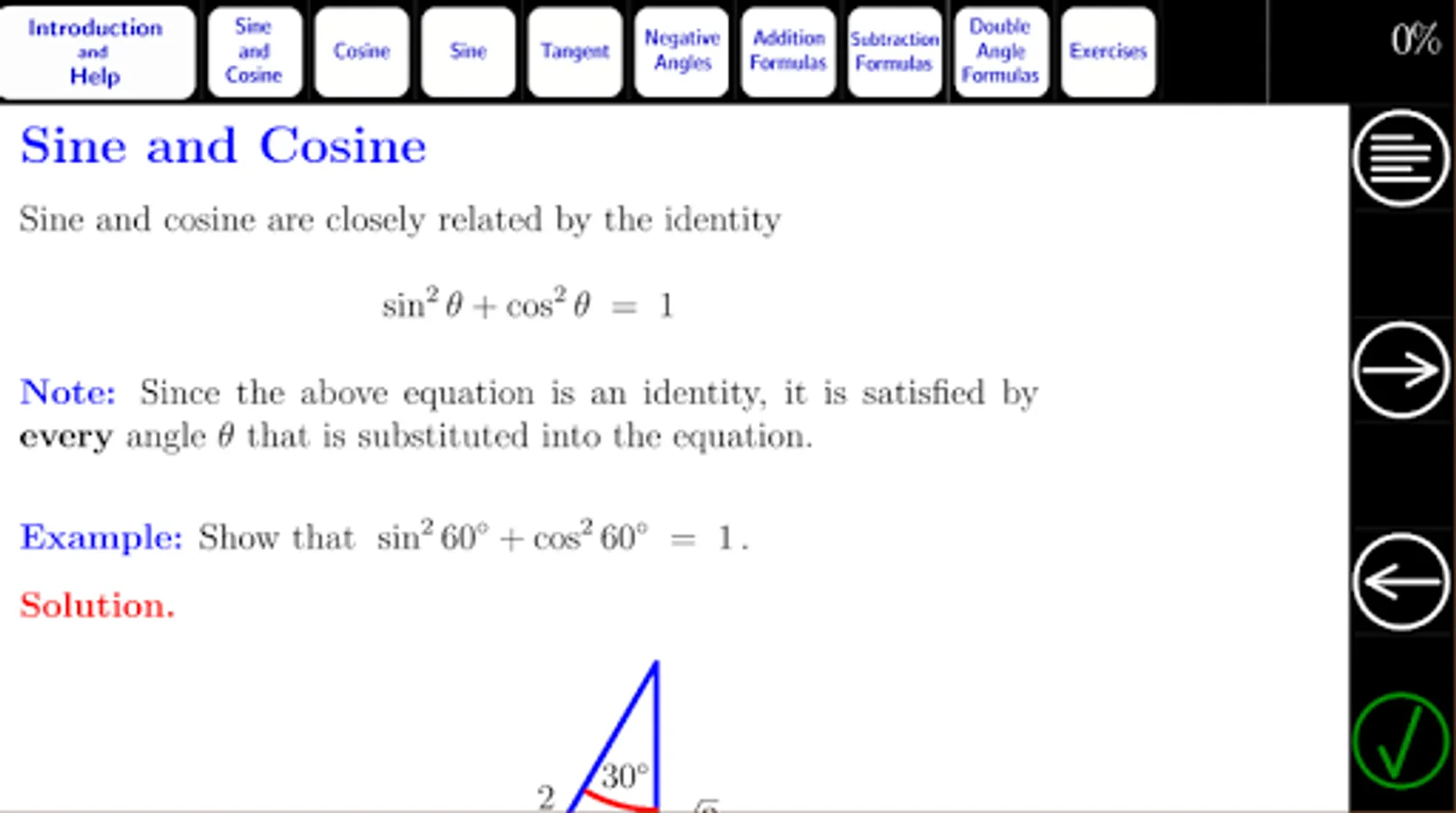 * Works without internet so that you can learn Trigonometry while travelling in the train, bus etc. Internet only required for links to privacy policy and other tutorials.