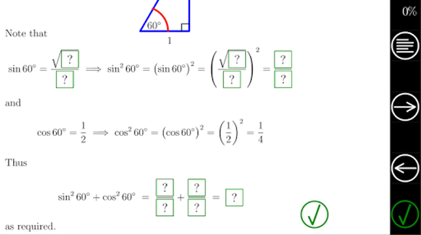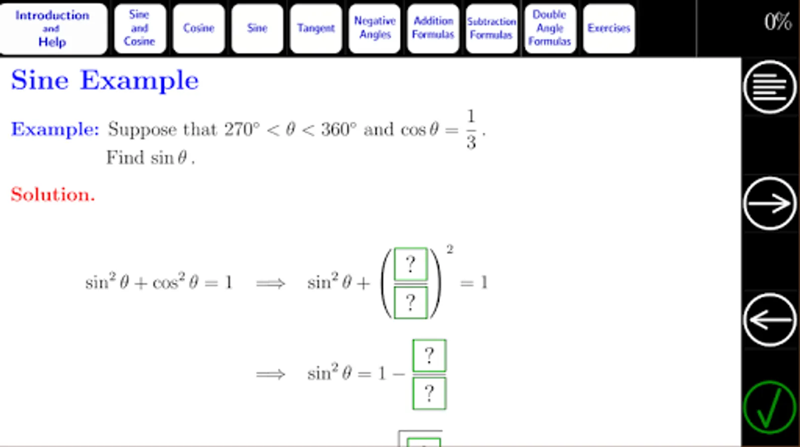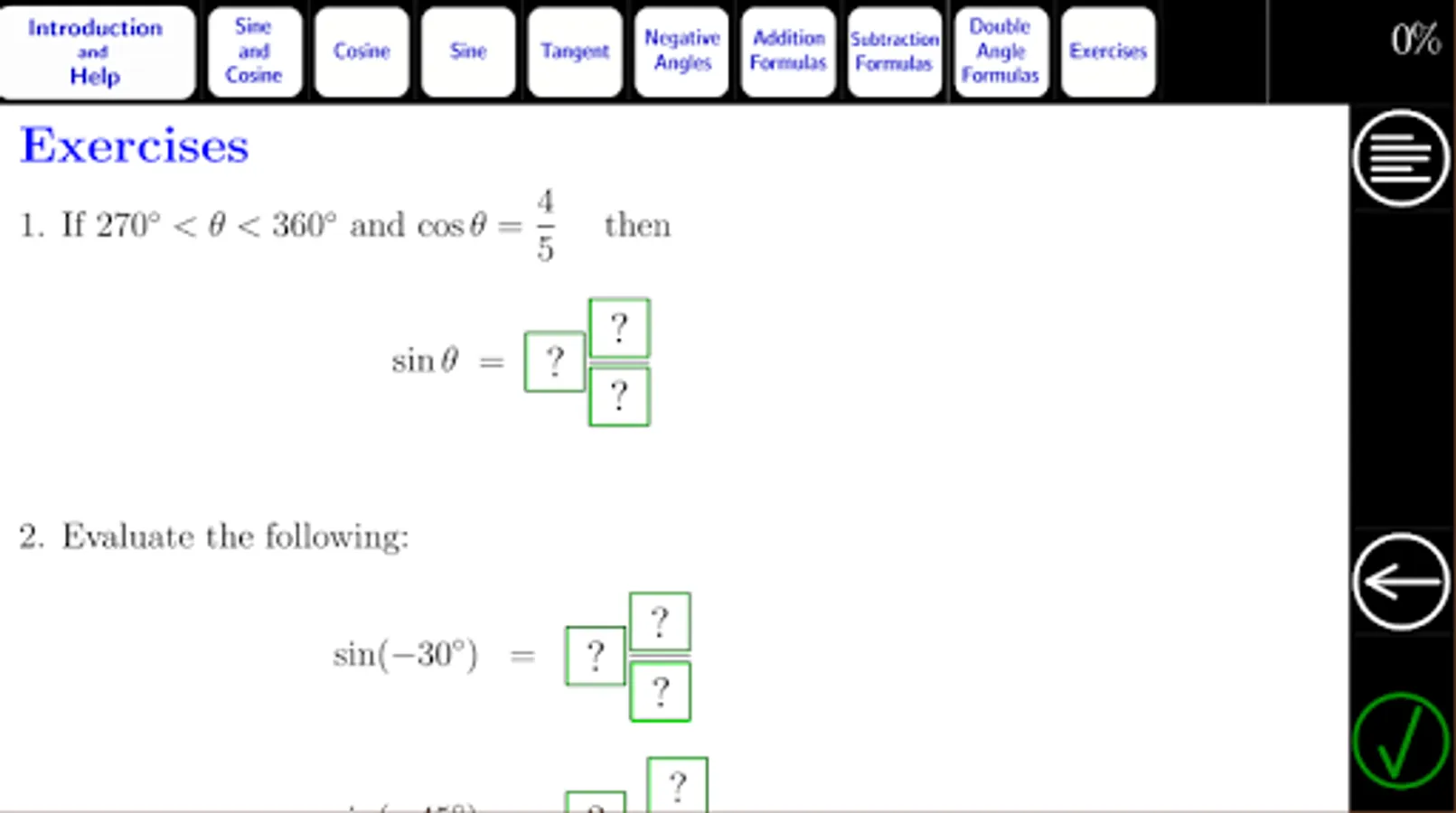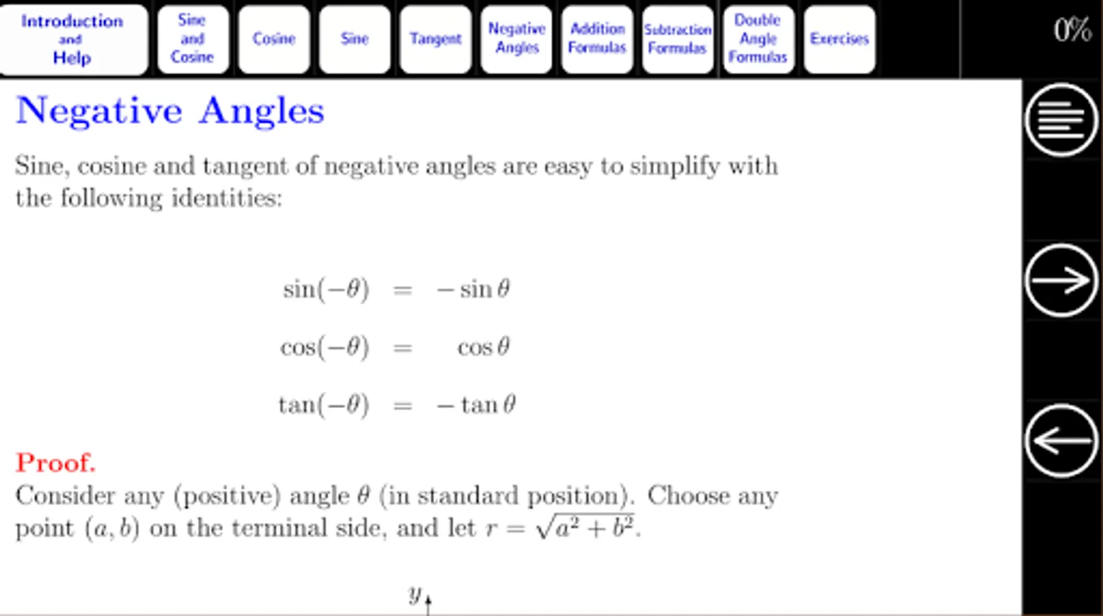 * Works without internet so that you can learn Trigonometry while travelling in the train, bus etc. Internet only required for links to privacy policy and other tutorials.