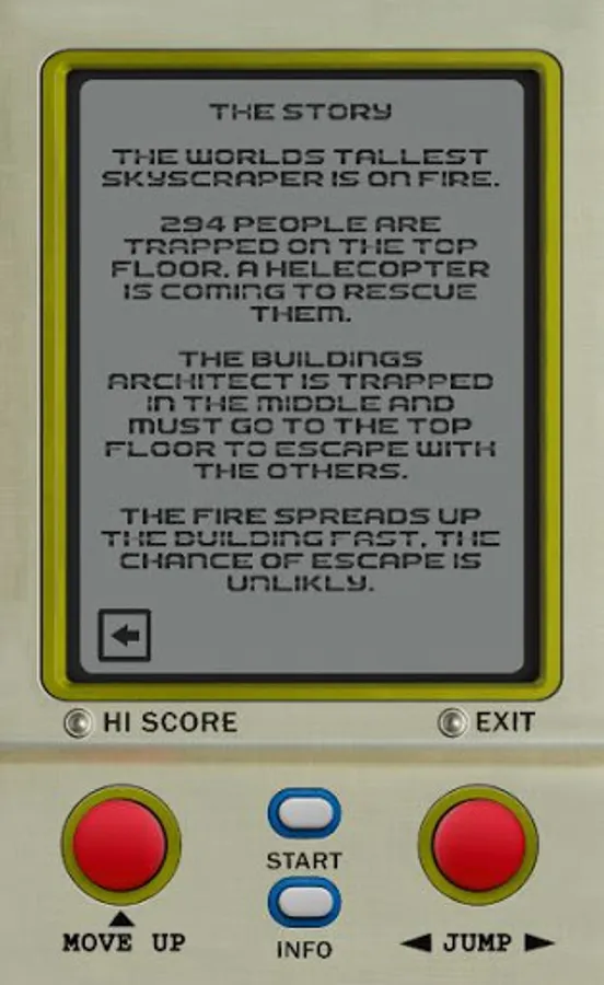 Escape the towering inferno, climb the floors of a skyscraper building to escape the fire.
