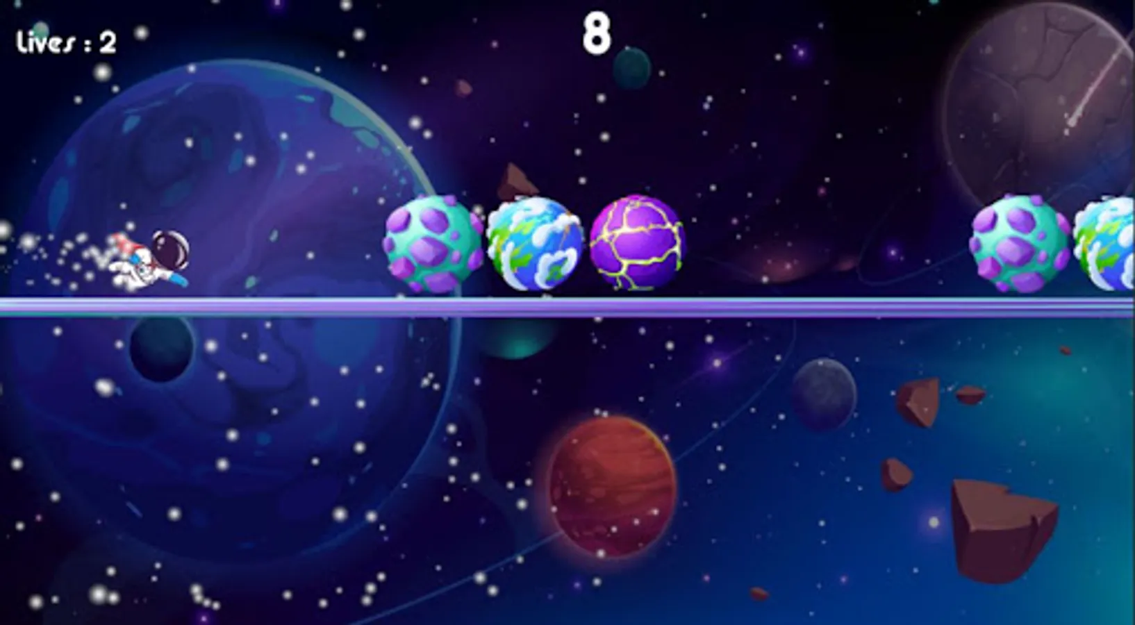 Try not to hit the planets for the longest time in the game, which starts with different galaxies coming over the astronaut. Make the longest time and break the record with the immersive atmosphere of our game with superior graphics.